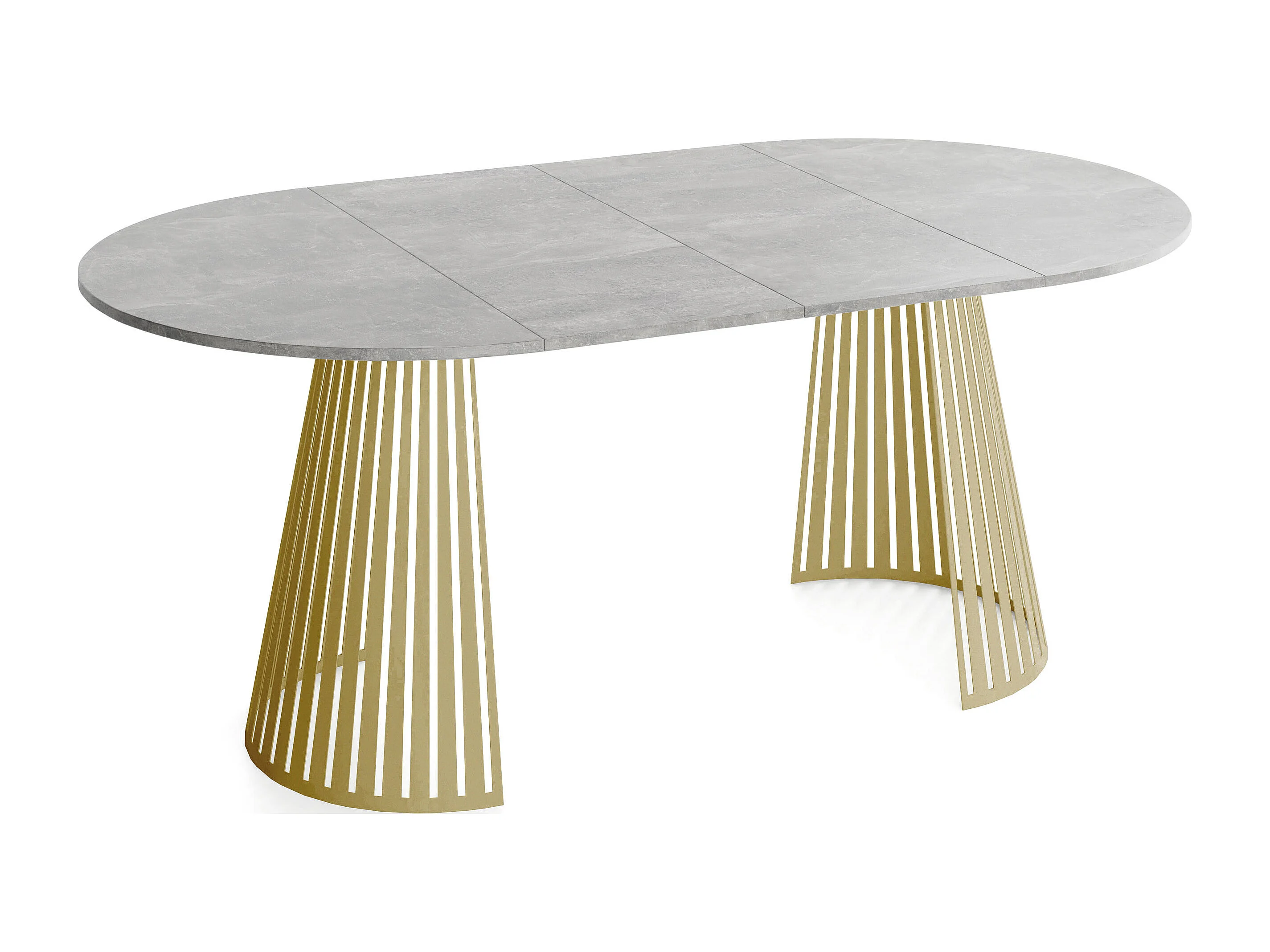 Table à Manger Ronde Extensible Style Loft – 120 cm – Design Industriel avec Pieds en Métal Doré, Gain de Place pour Salon ou Salle à Manger – Gris Béton