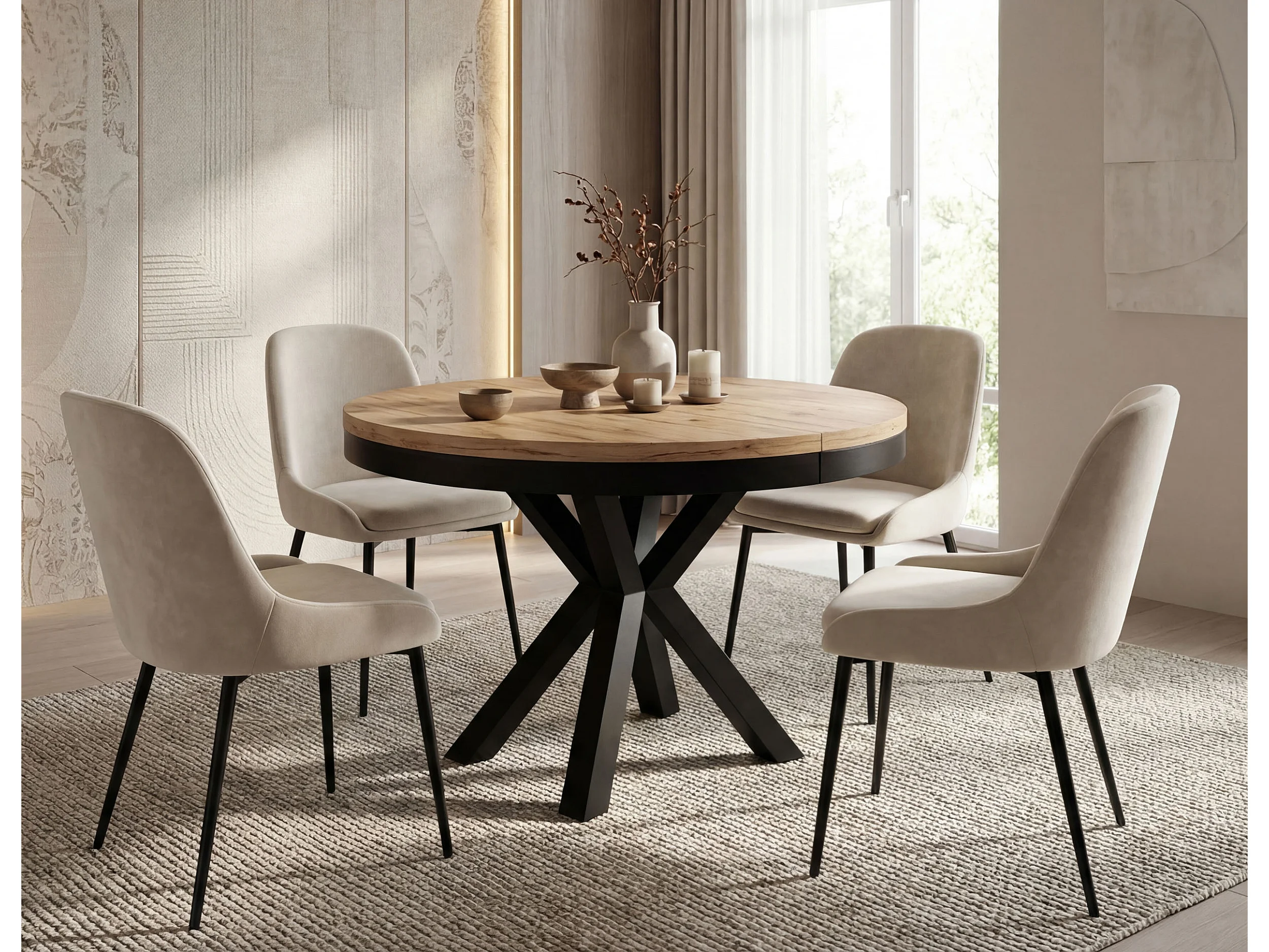 Table à Manger Ronde Extensible Style Loft – Table Industrielle avec Pieds en Métal Noir – Gain de Place pour Salon et Séjour – Chêne Craft – 100 cm