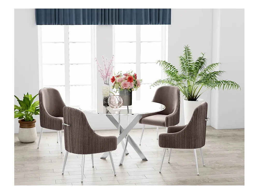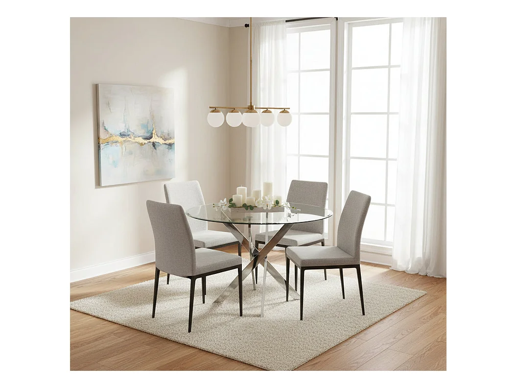 Table à manger ronde JESSICA TRANSPARENT chrome 100 cm 4 couverts