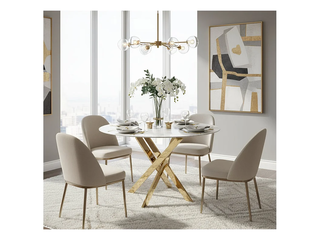 Table a manger ronde JESSICA Gold XXL 120 cm 4 couverts effet marbré gris
