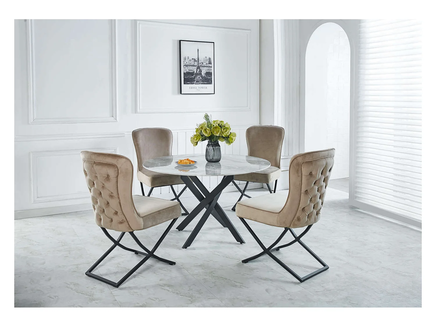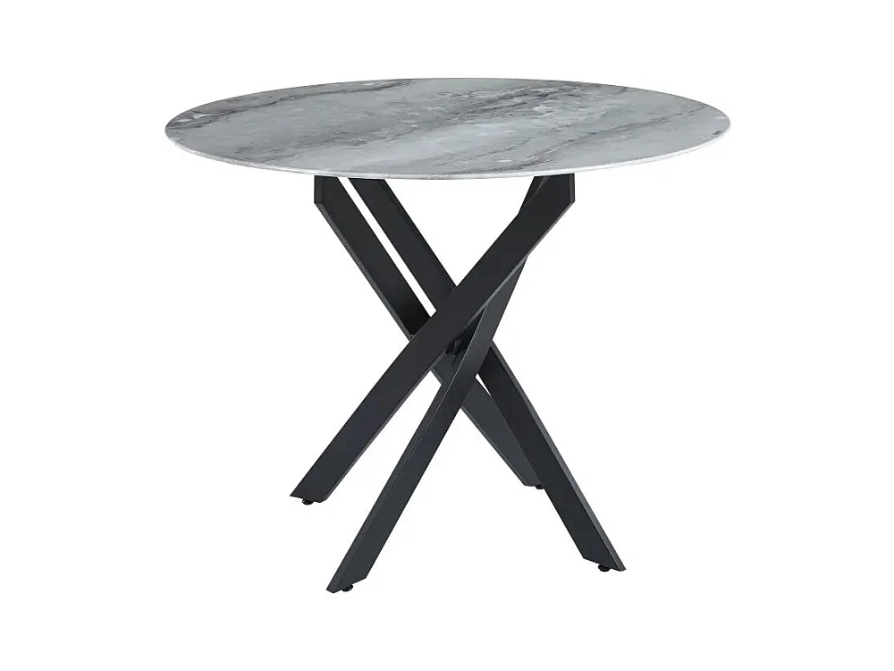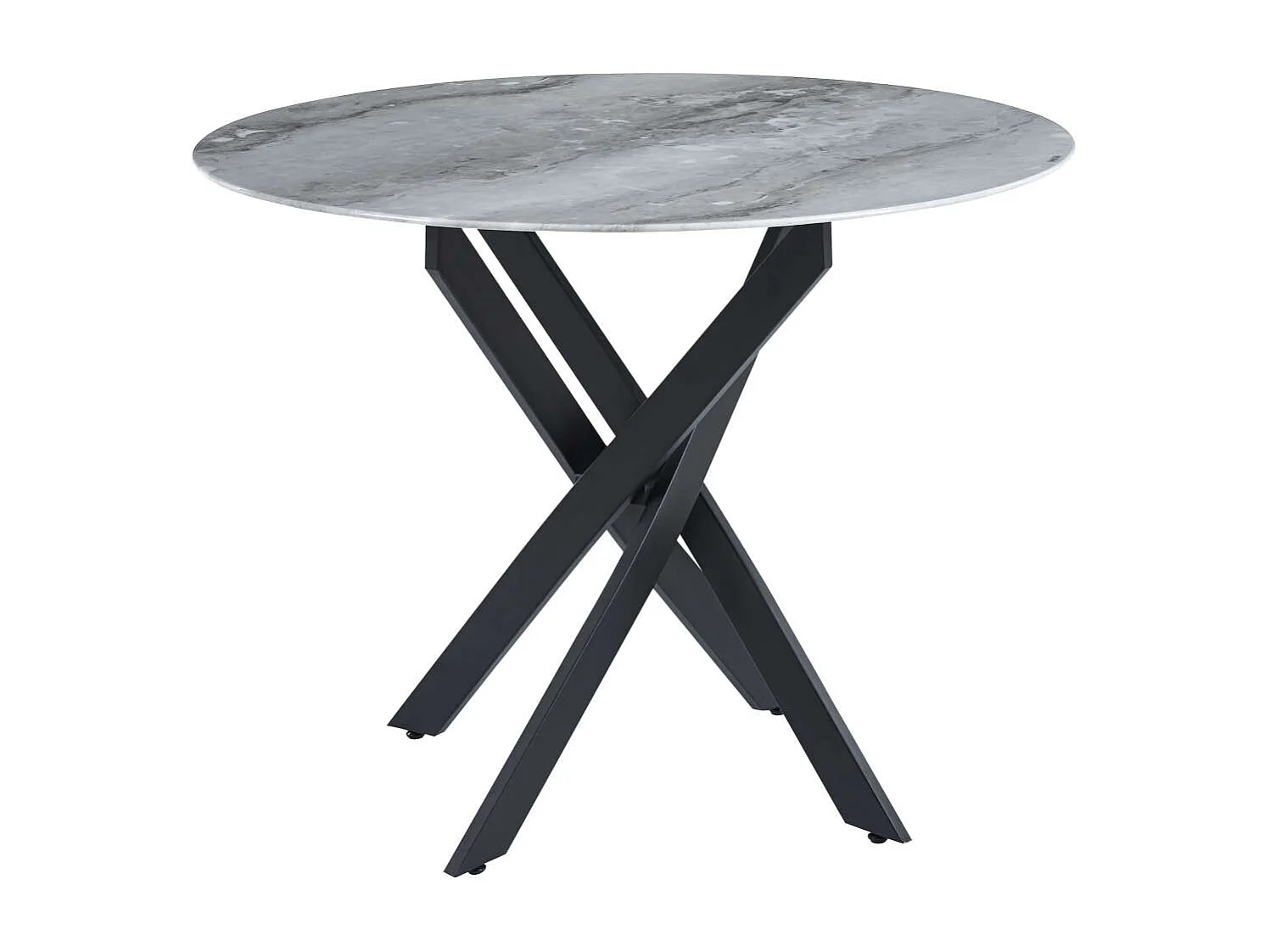 Table à manger ronde MARBRE GRIS JESSICA Métal noir 100 cm 4 couverts