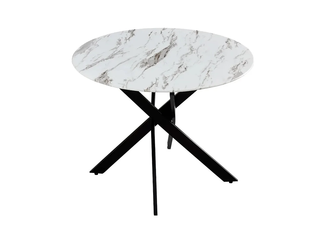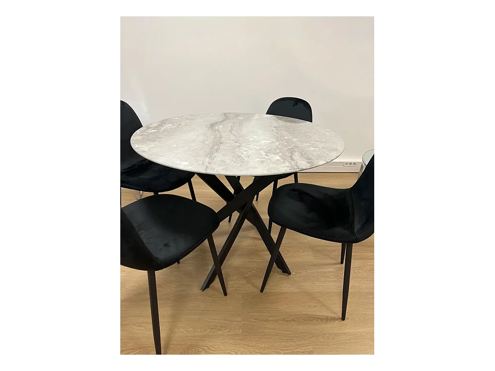 Table à manger ronde JESSICA en MARBRE BLANC pieds Métal noir 100 cm 4 couverts