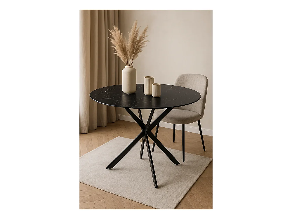 Table a manger ronde MARBRE NOIR JESSICA Métal noir XXL 120 cm 4 couverts