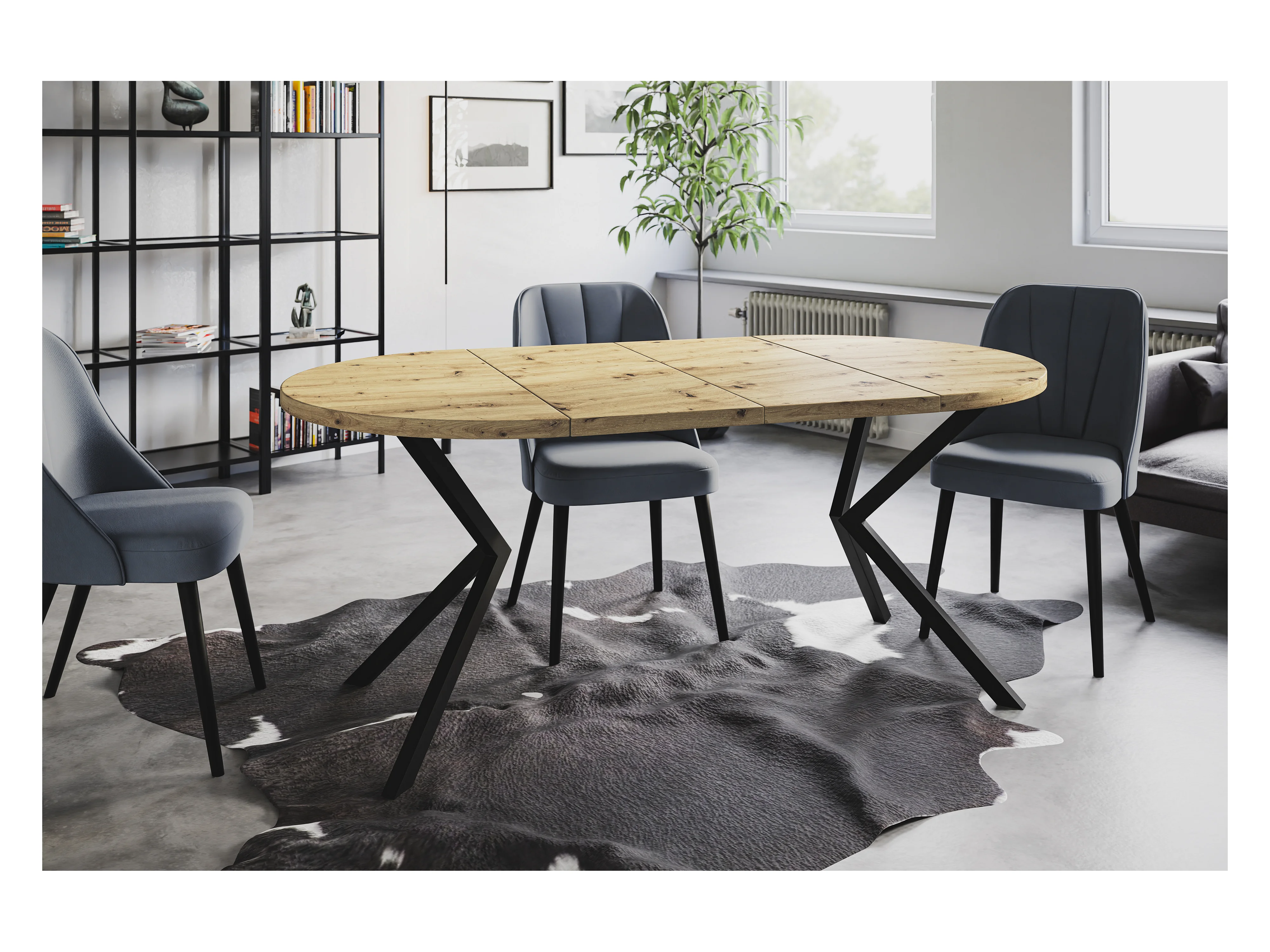 Table à manger ronde LITEN, table à rallonges Diamètre : 100 cm/180 cm, couleur de la table basse : brun mat, avec pieds métalliques de couleur noire