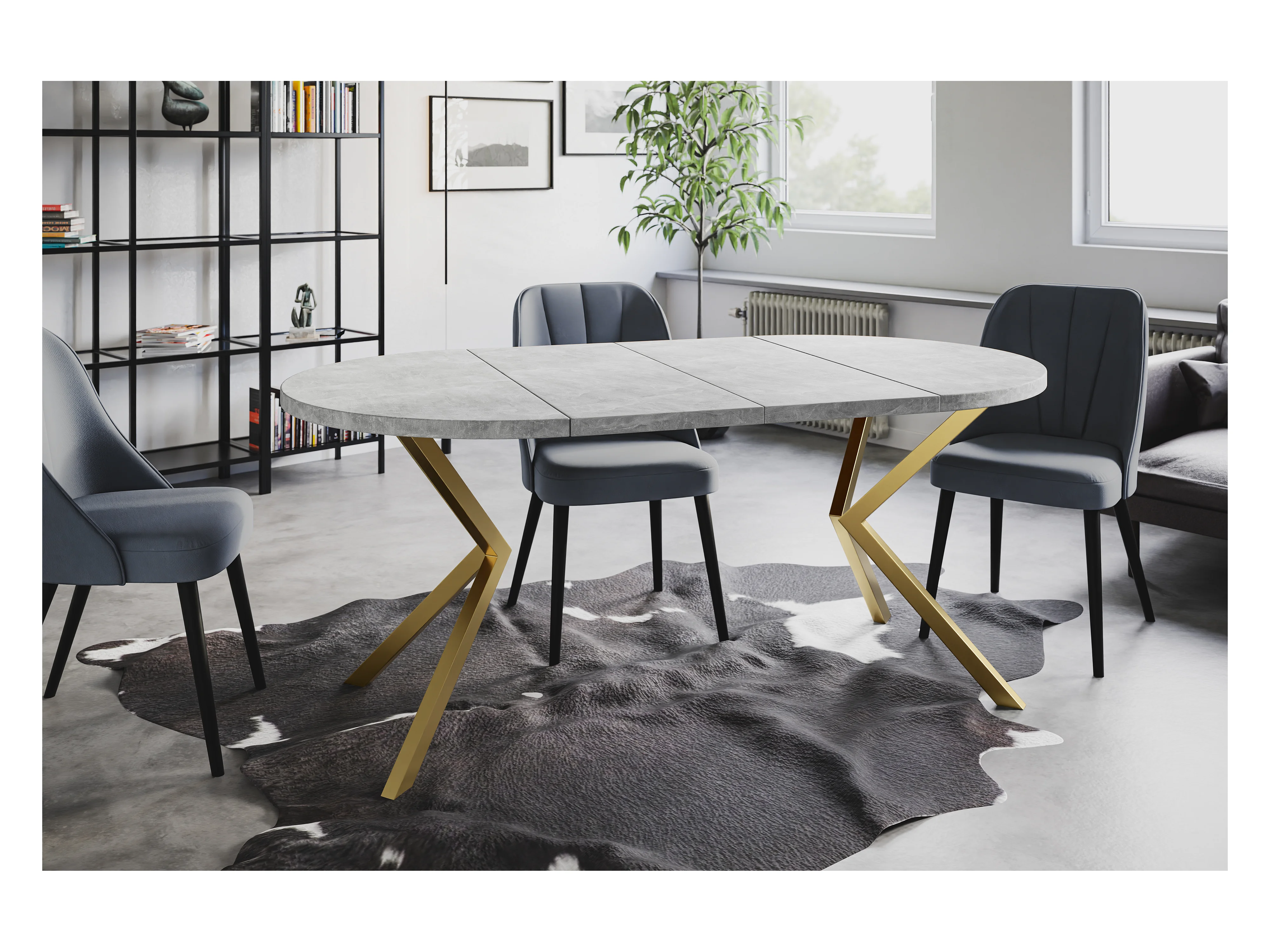 Table à manger ronde LITEN, table à rallonges Diamètre : 100 cm/180 cm, couleur de la table basse : gris clair, avec pieds métalliques couleur or