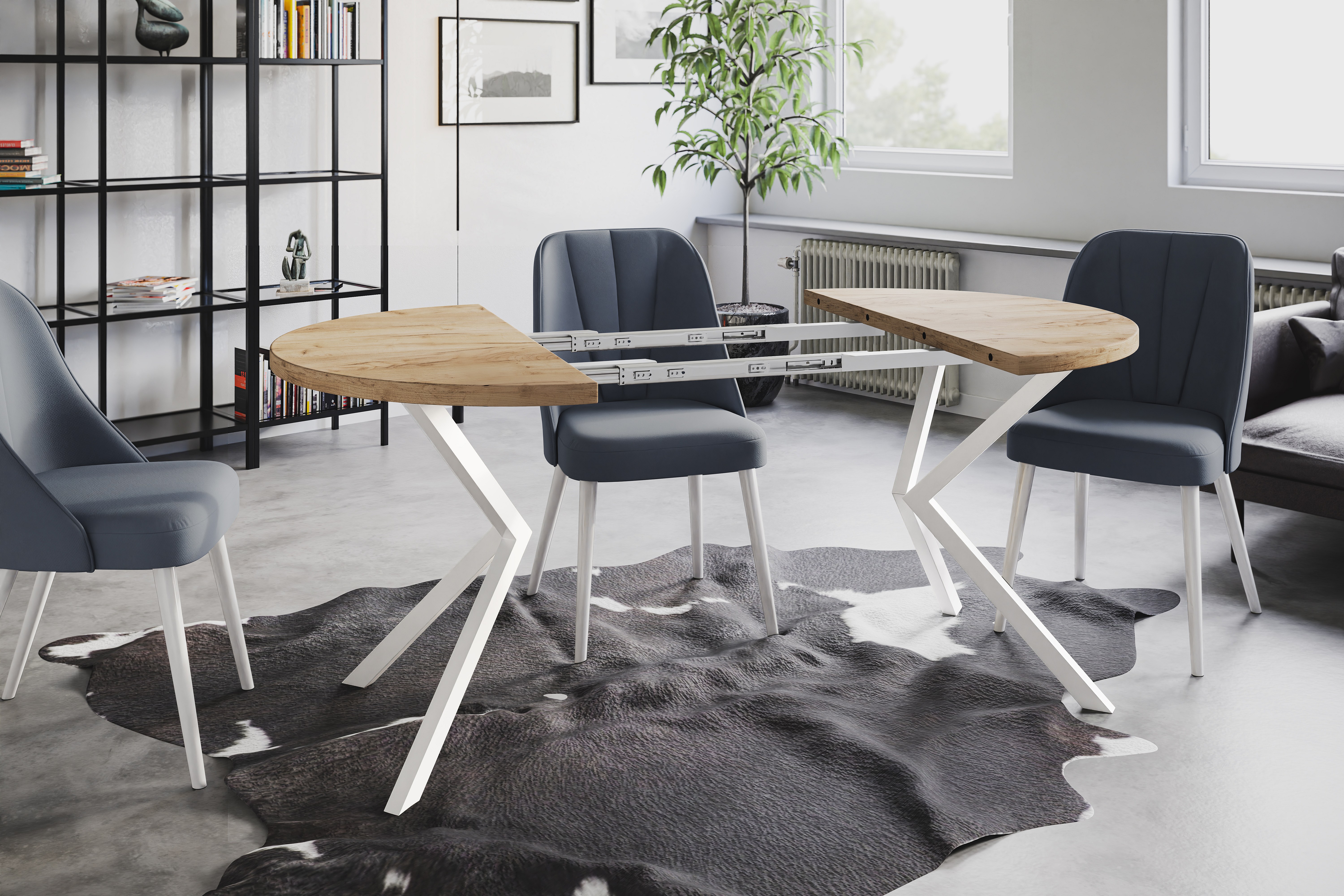 Table à manger ronde LITEN, table à rallonges Diamètre : 100 cm/180 cm, couleur de la table basse : marron, avec pieds métalliques blancs