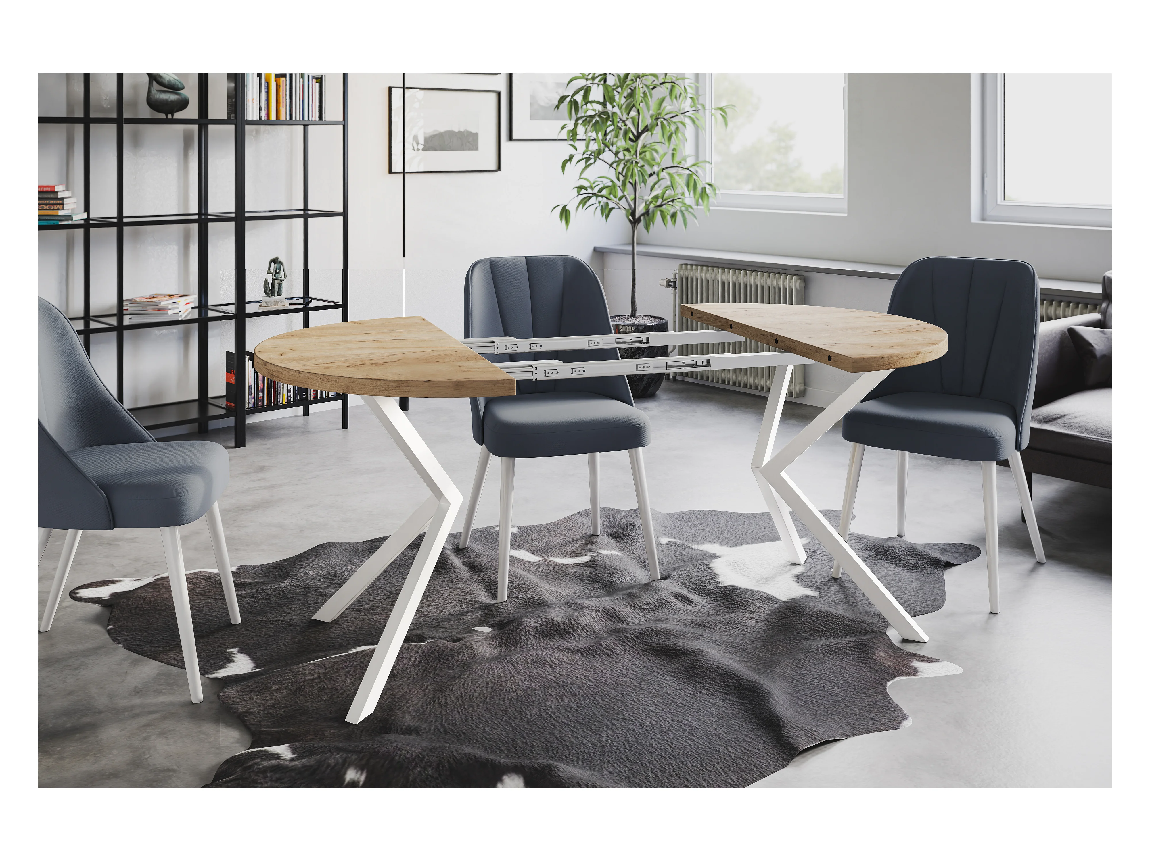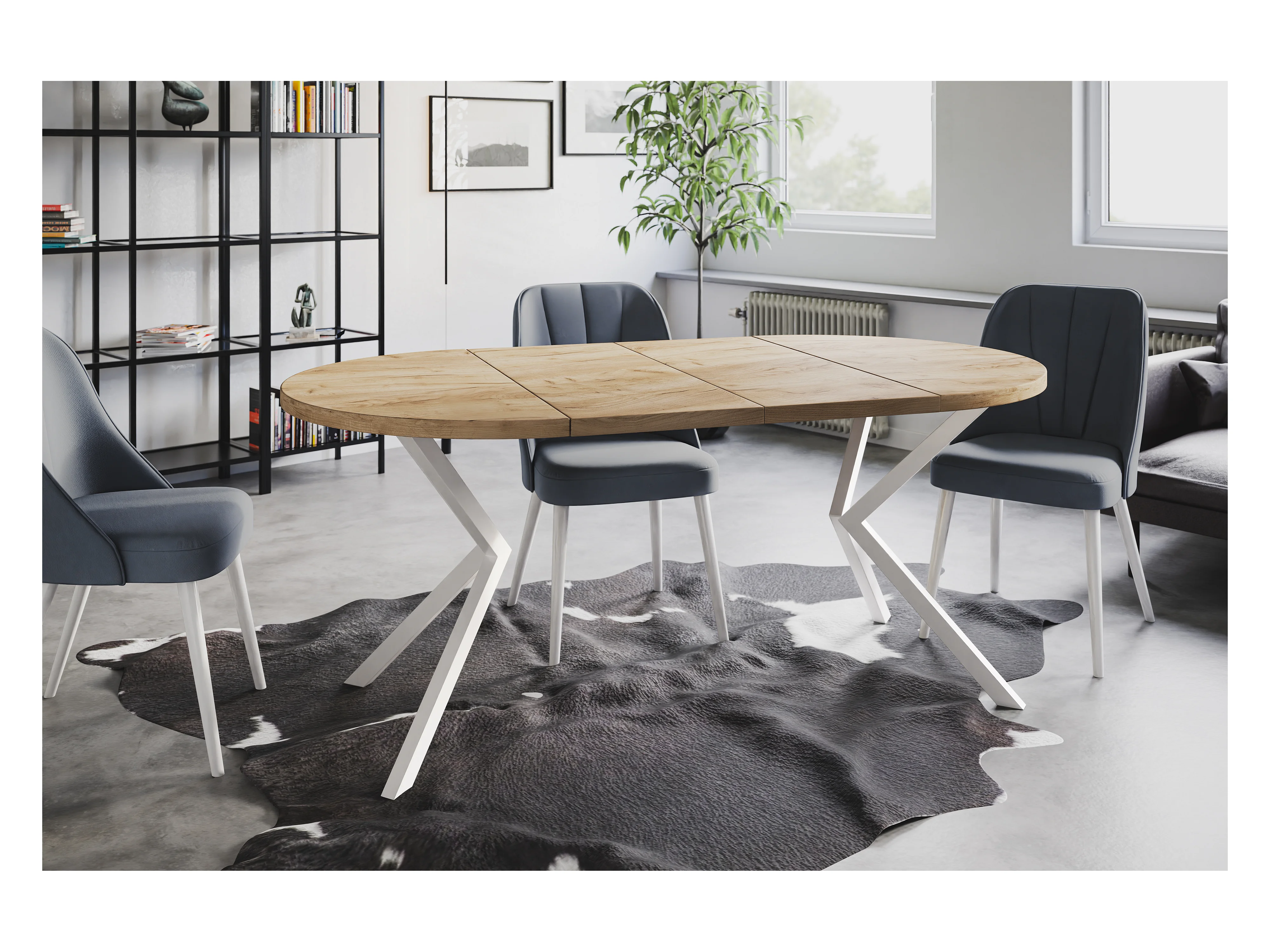 Table à manger ronde LITEN, table à rallonges Diamètre : 120 cm/200 cm, couleur de la table basse : marron, avec pieds métalliques blancs