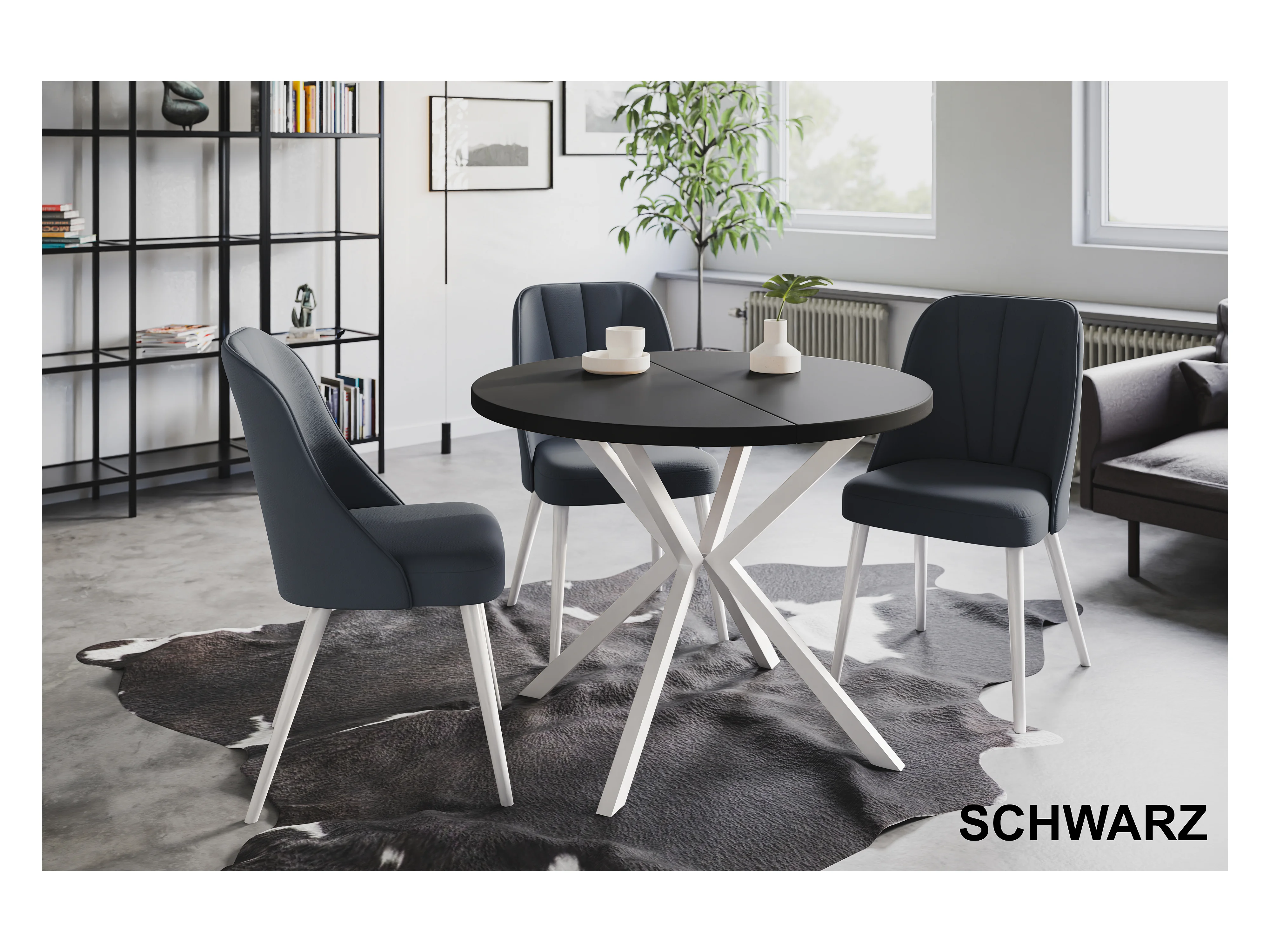 Table à manger ronde LITEN, table à rallonges Diamètre : 120 cm/200 cm, couleur de la table basse : noir, avec pieds métalliques blancs