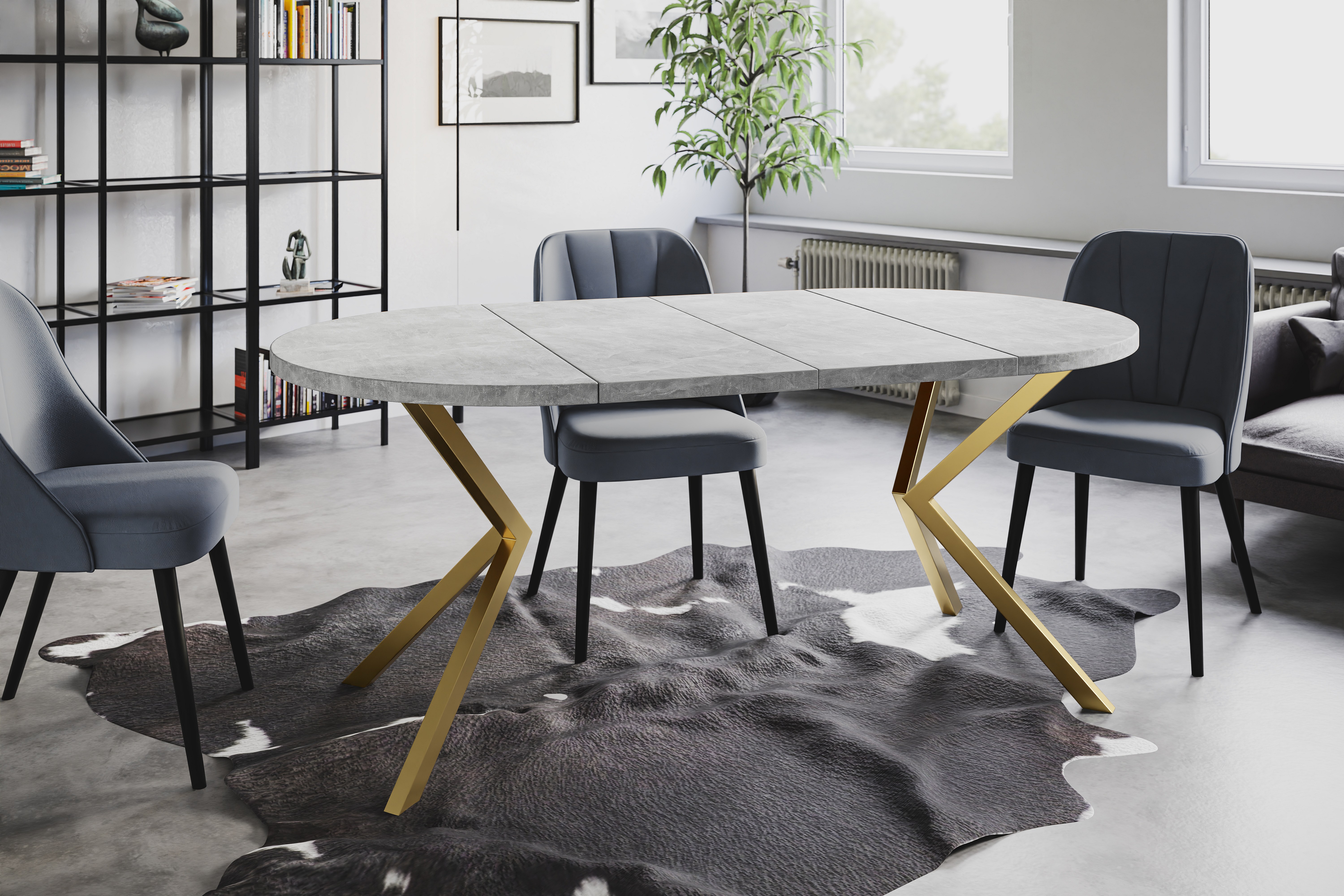 Table à manger ronde LITEN, table à rallonges Diamètre : 120 cm/200 cm, table de salon Couleur : gris clair, avec pieds métalliques couleur or