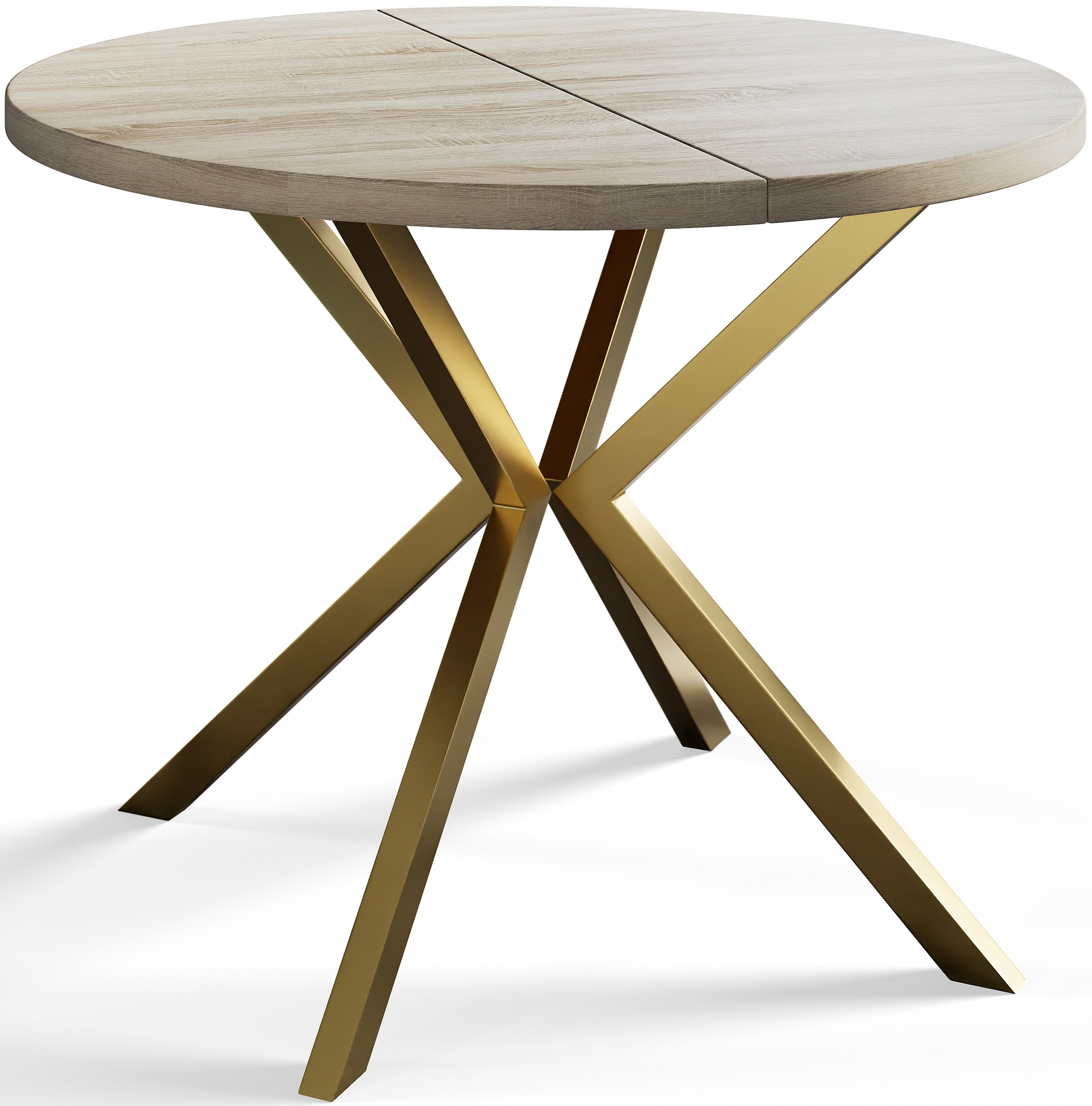 Table à manger ronde LITEN, table à rallonges Diamètre : 90 cm/170 cm, couleur de la table basse : beige, avec pieds métalliques couleur or