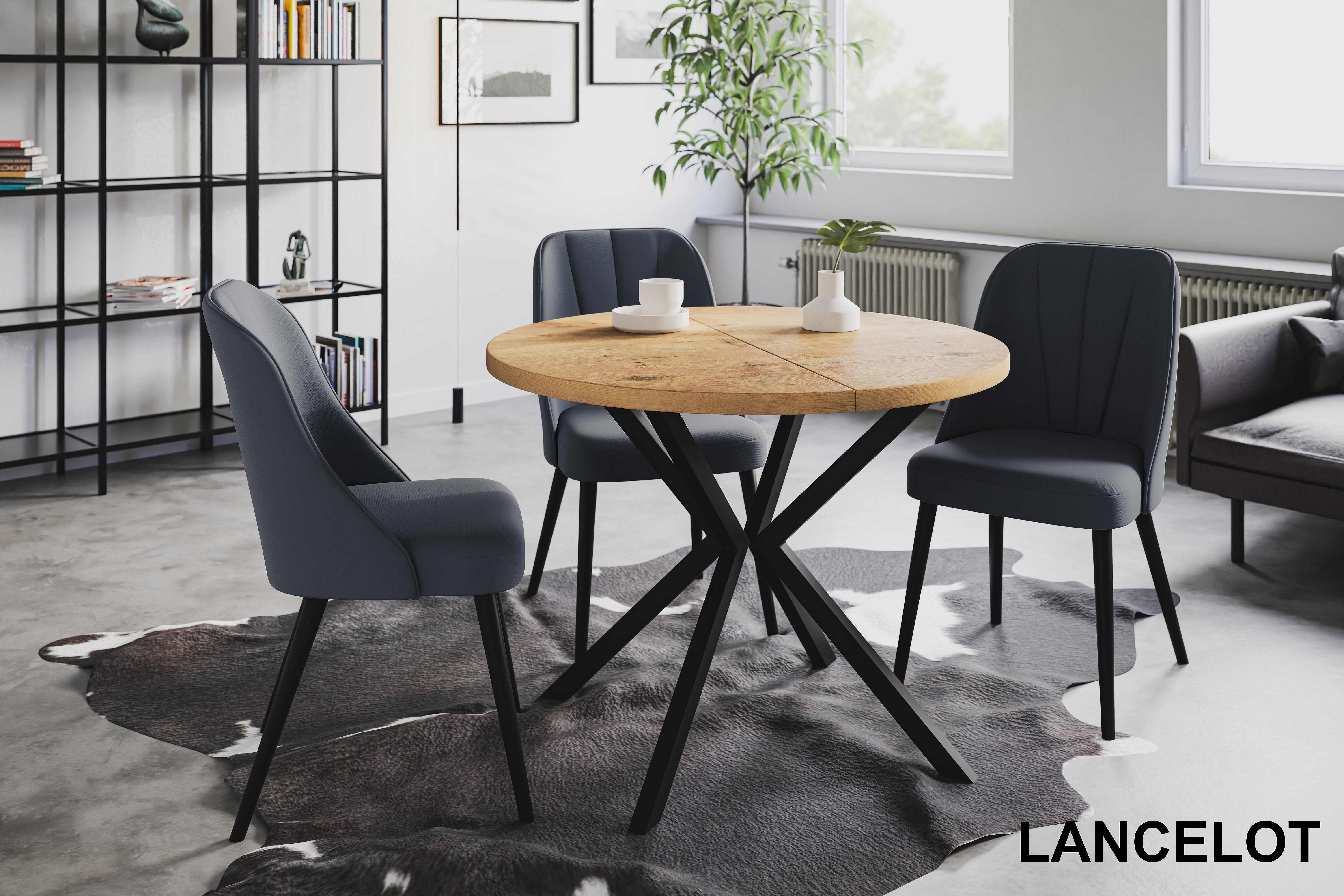 Table à manger ronde LITEN, table à rallonges Diamètre : 90 cm/170 cm, couleur de la table basse : marron clair, avec pieds métalliques de couleur noire