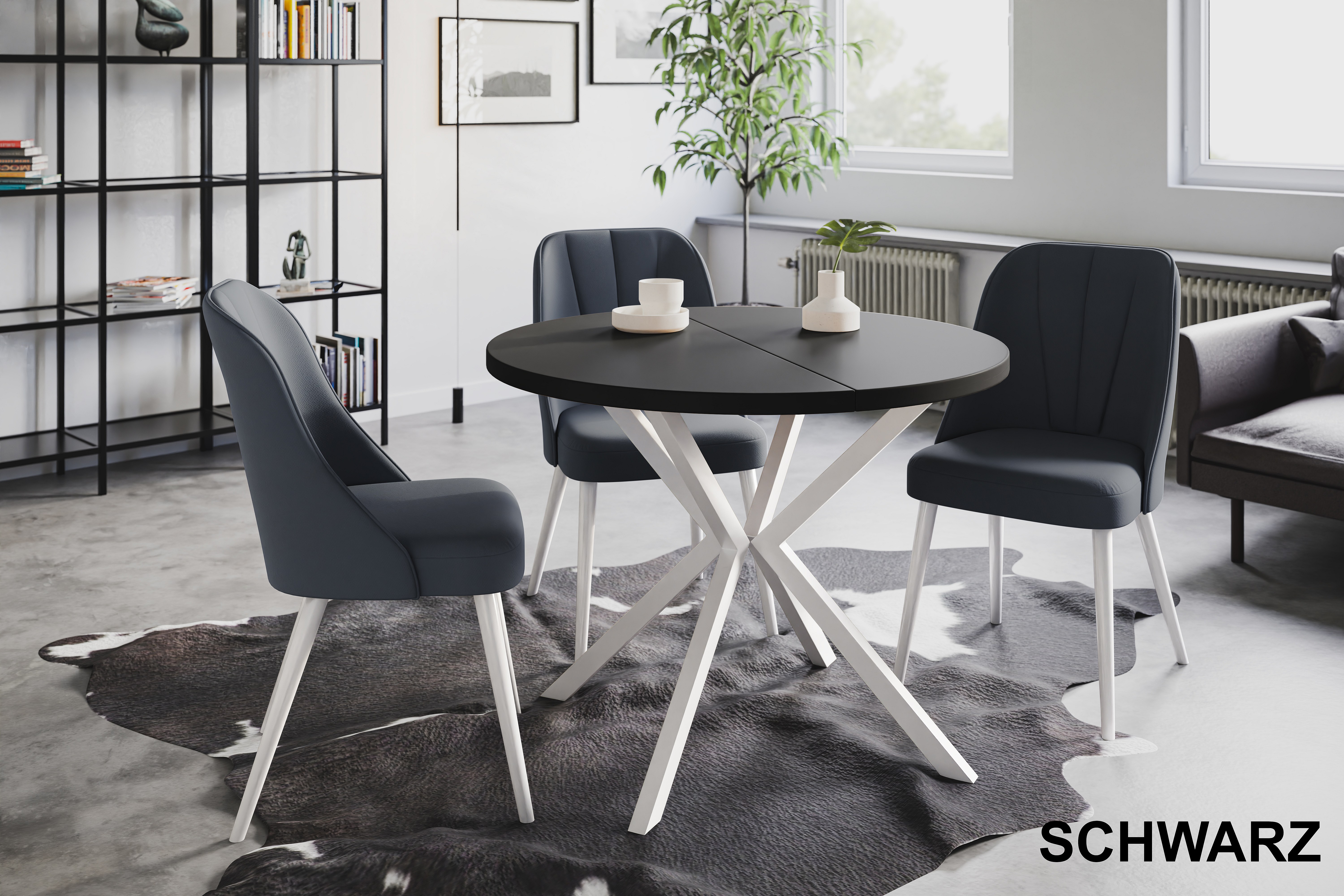 Table à manger ronde LITEN, table à rallonges Diamètre : 90 cm/170 cm, couleur de la table basse : noir, avec pieds métalliques blancs