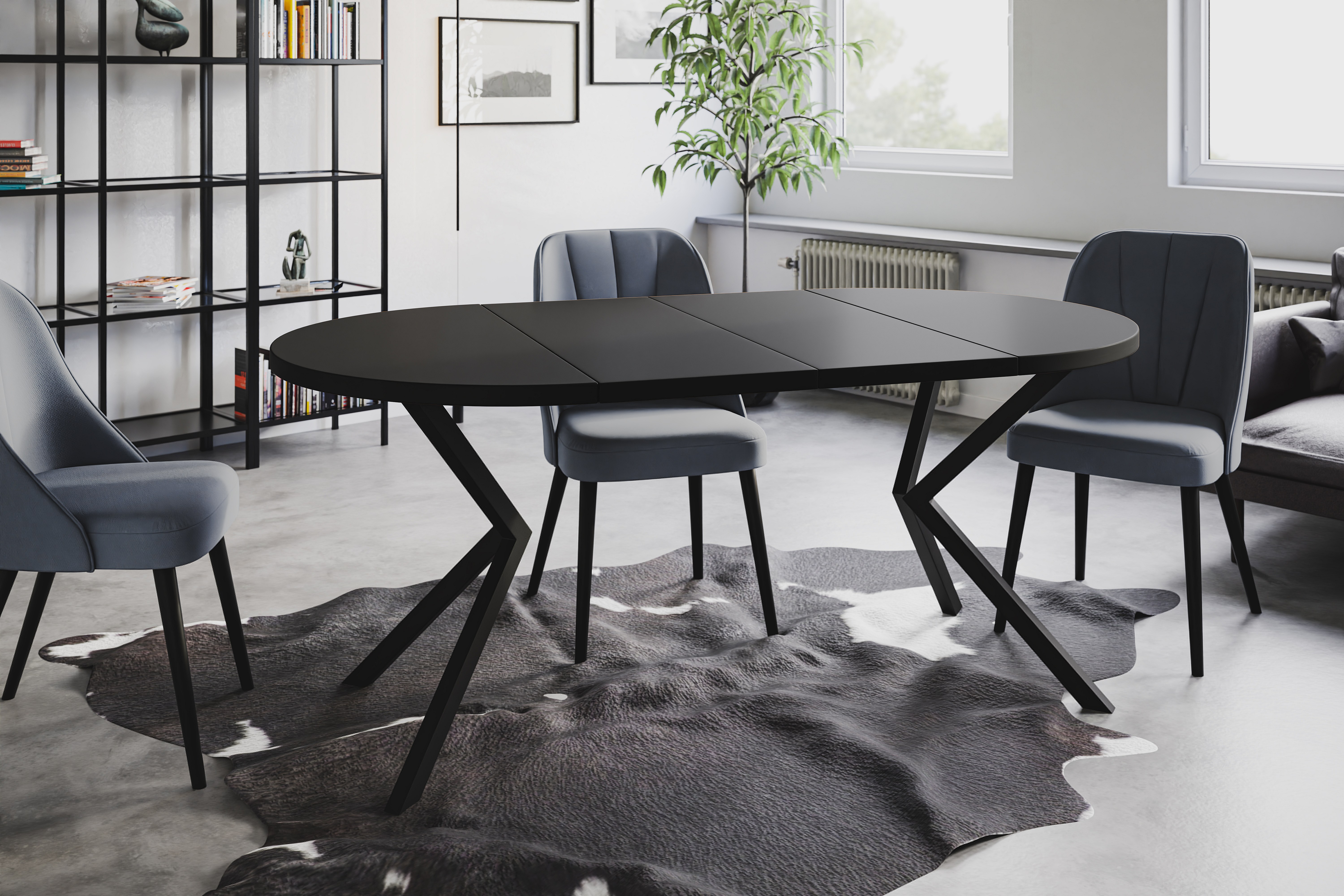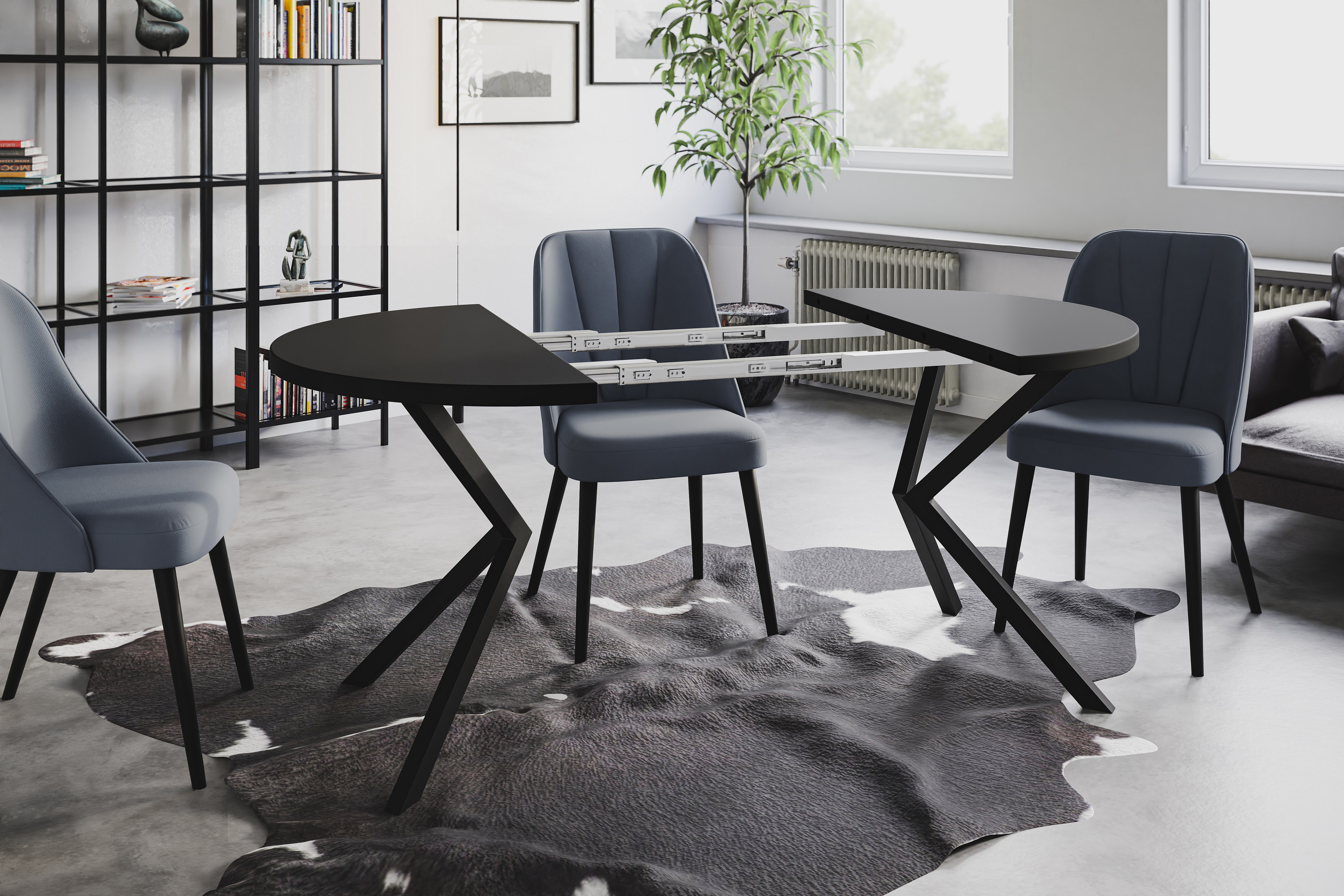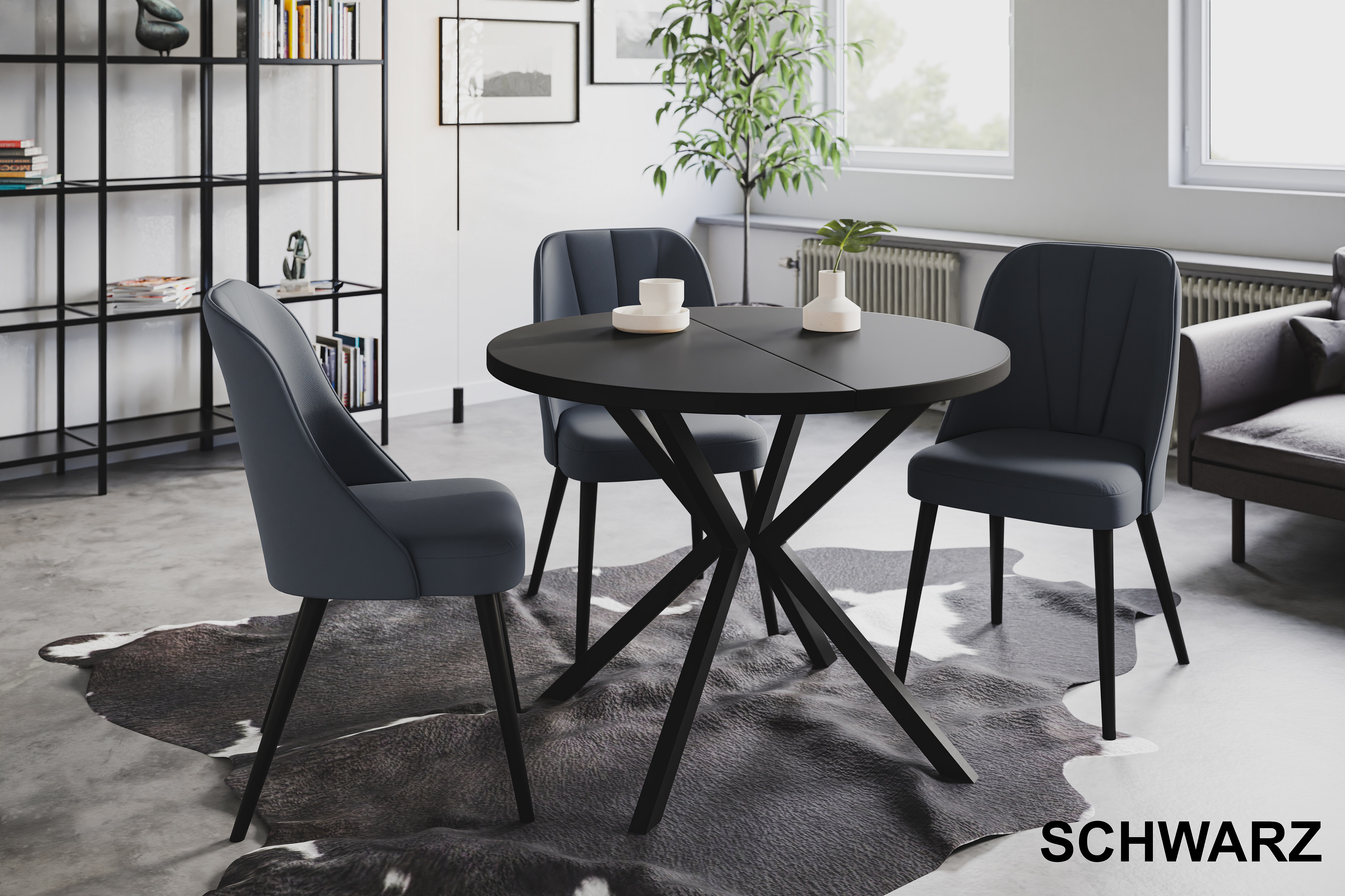 Table à manger ronde LITEN, table à rallonges Diamètre : 90 cm/170 cm, couleur de la table basse : noir, avec pieds métalliques de couleur noire