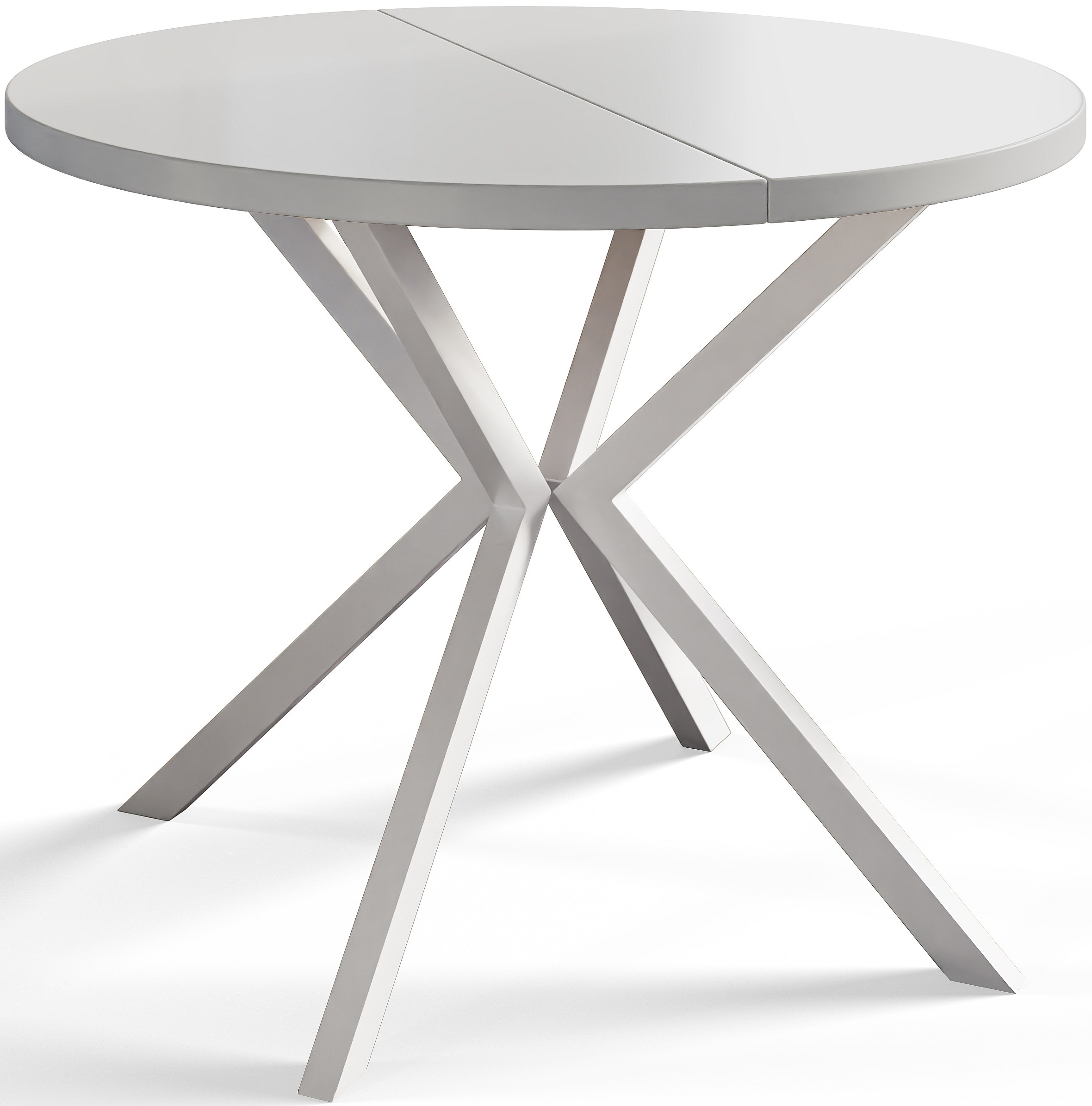 Table à manger ronde LITEN, table à rallonges Diamètre : 90 cm/170 cm, table de salon Couleur : blanc, avec pieds métalliques blancs