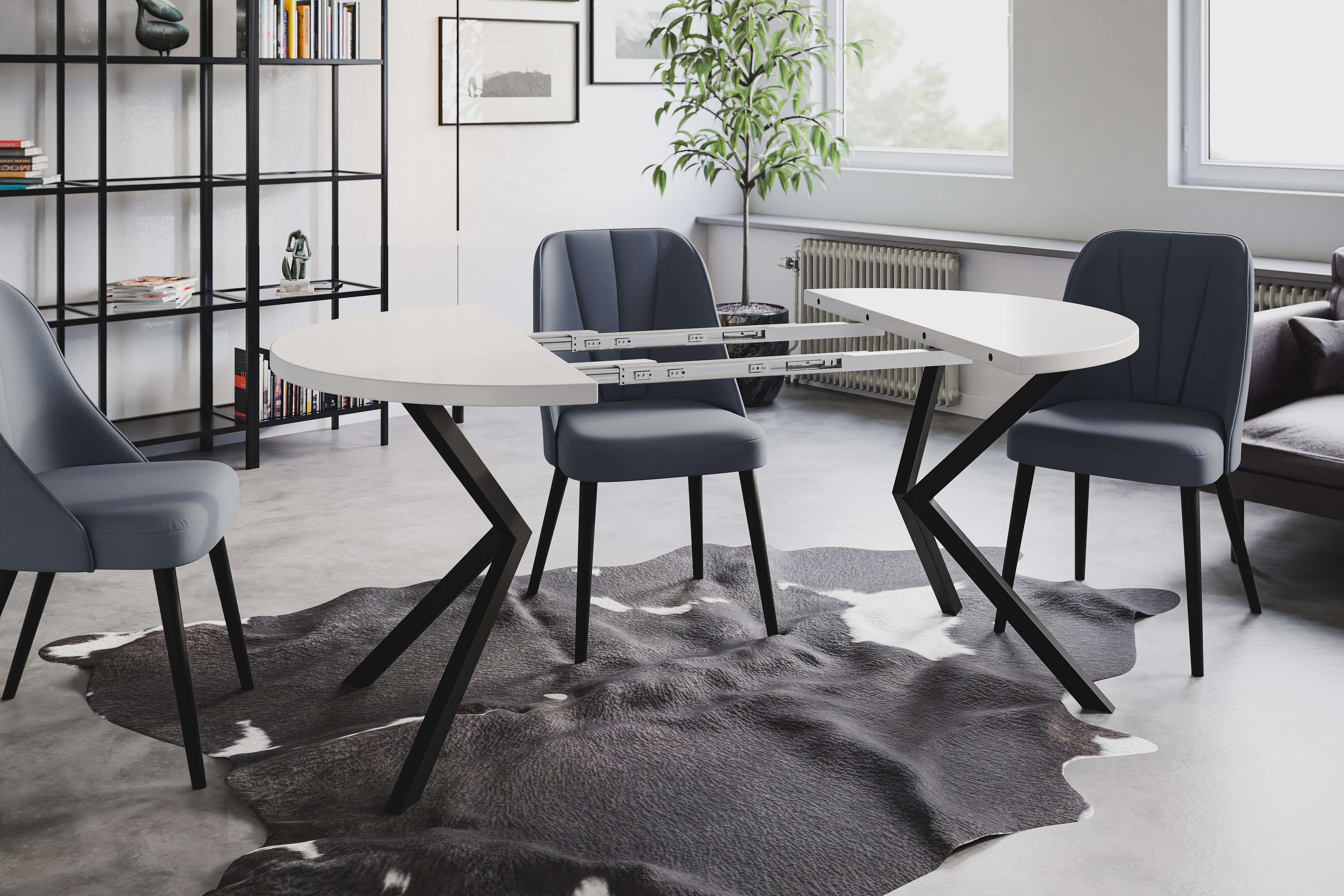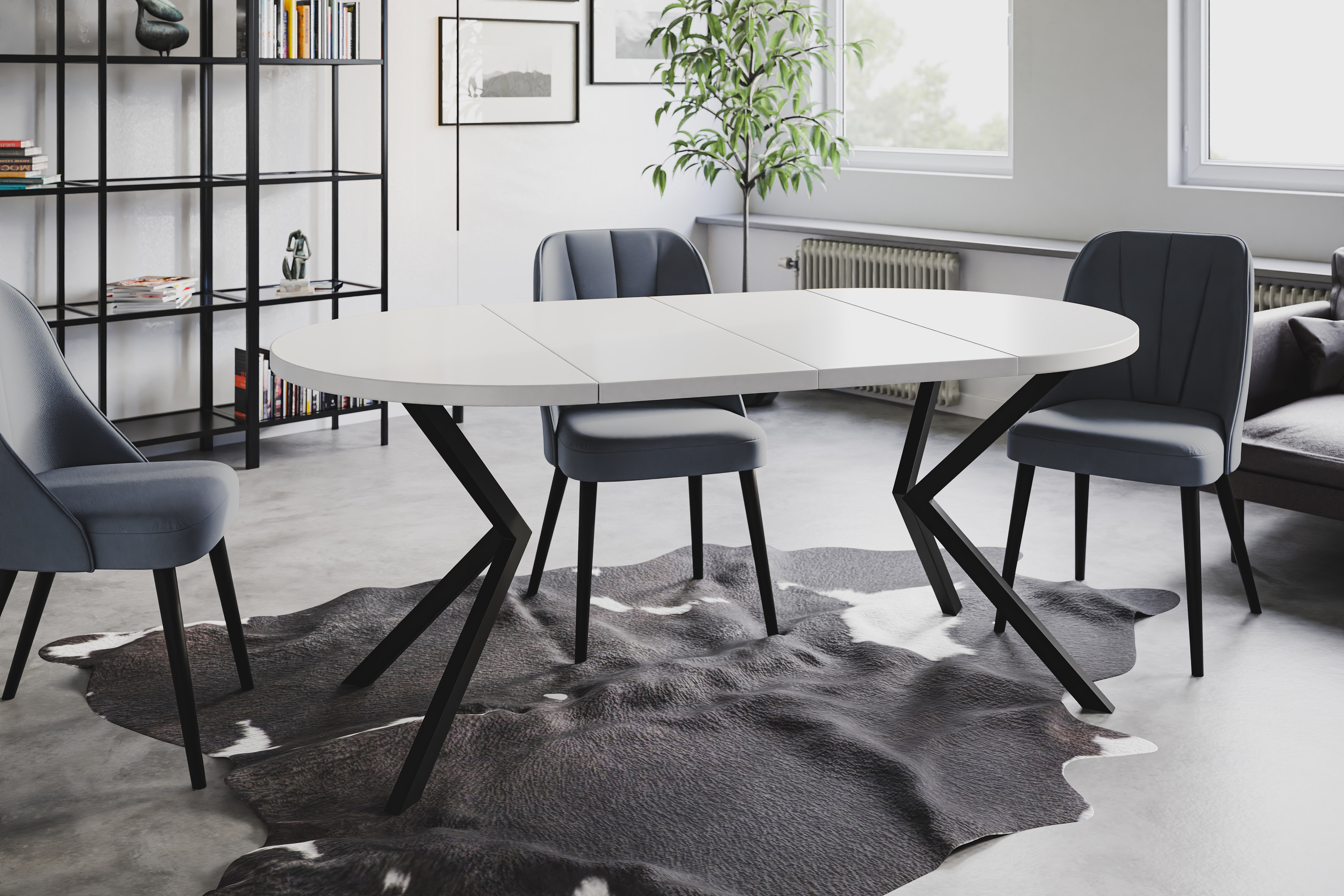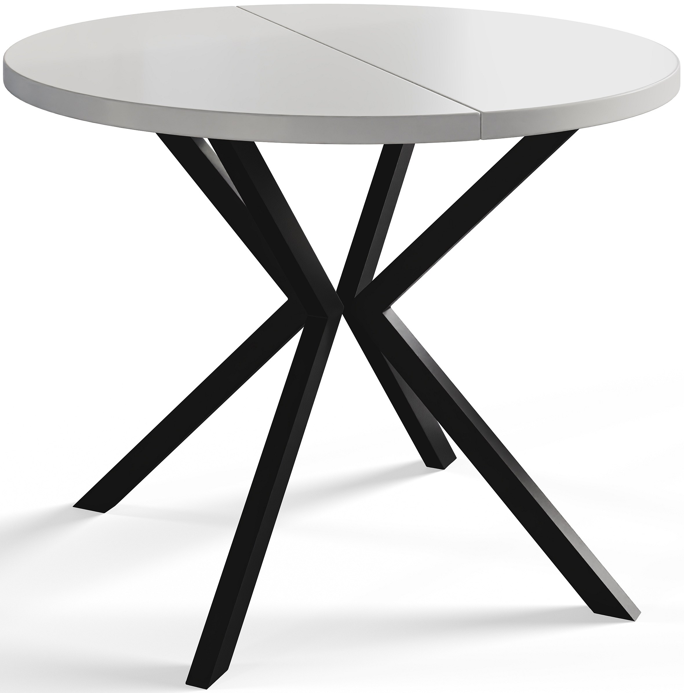 Table à manger ronde LITEN, table à rallonges Diamètre : 90 cm/170 cm, table de salon Couleur : blanc, avec pieds métalliques de couleur noir