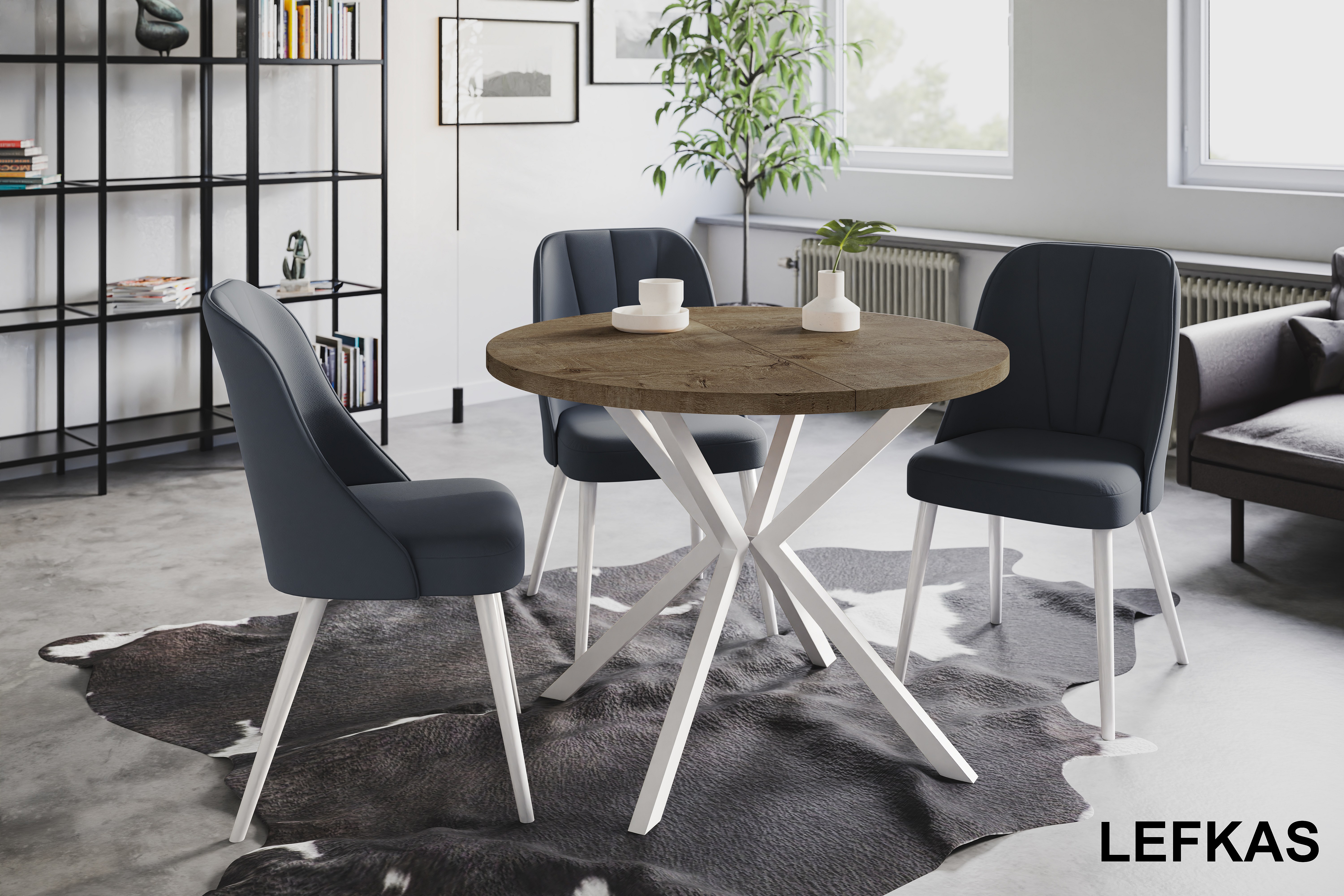 Table à manger ronde LITEN, table à rallonges Diamètre : 90 cm/170 cm, table de salon Couleur : gris, avec pieds métalliques blancs