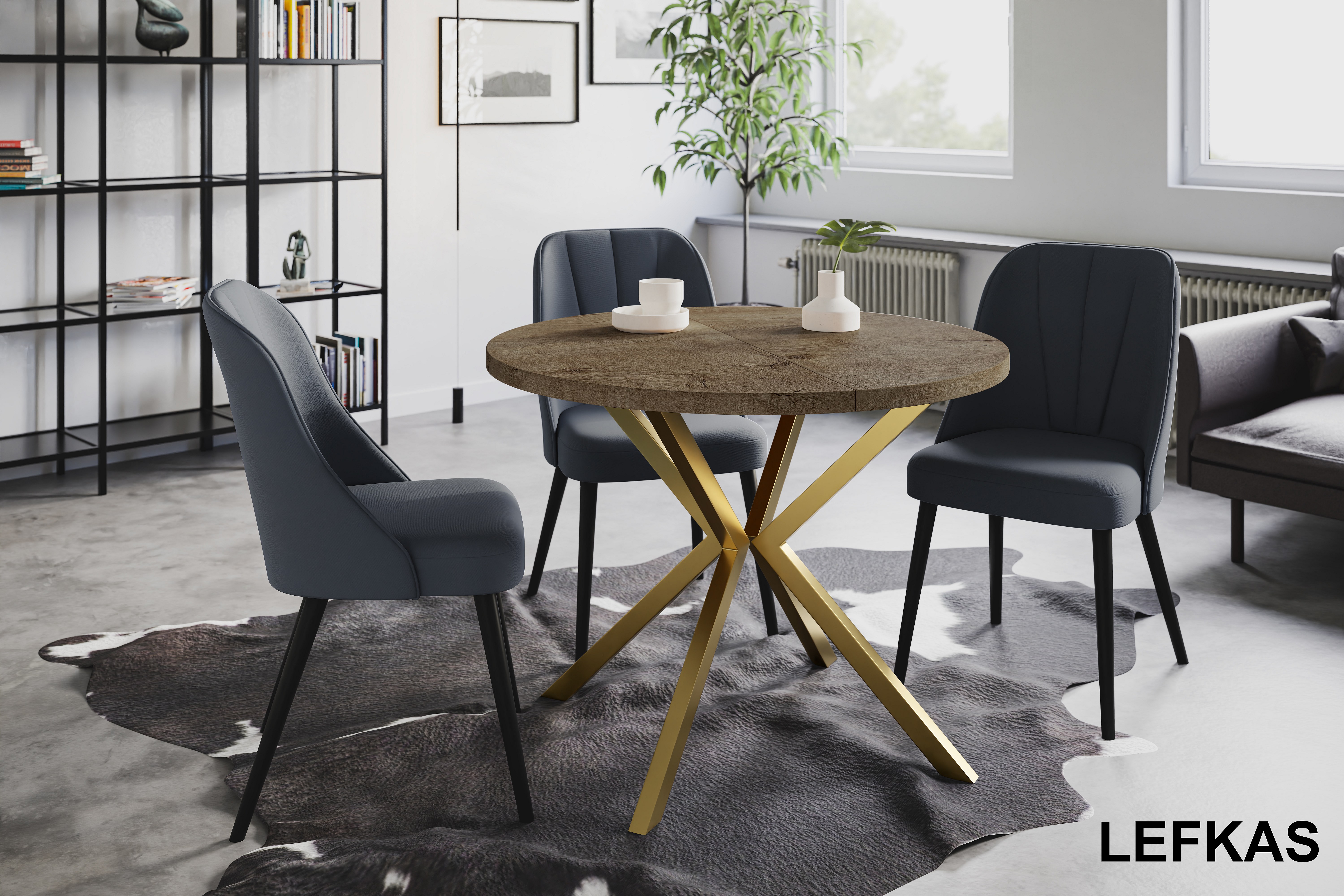Table à manger ronde LITEN, table à rallonges Diamètre : 90 cm/170 cm, table de salon Couleur : gris, avec pieds métalliques couleur or