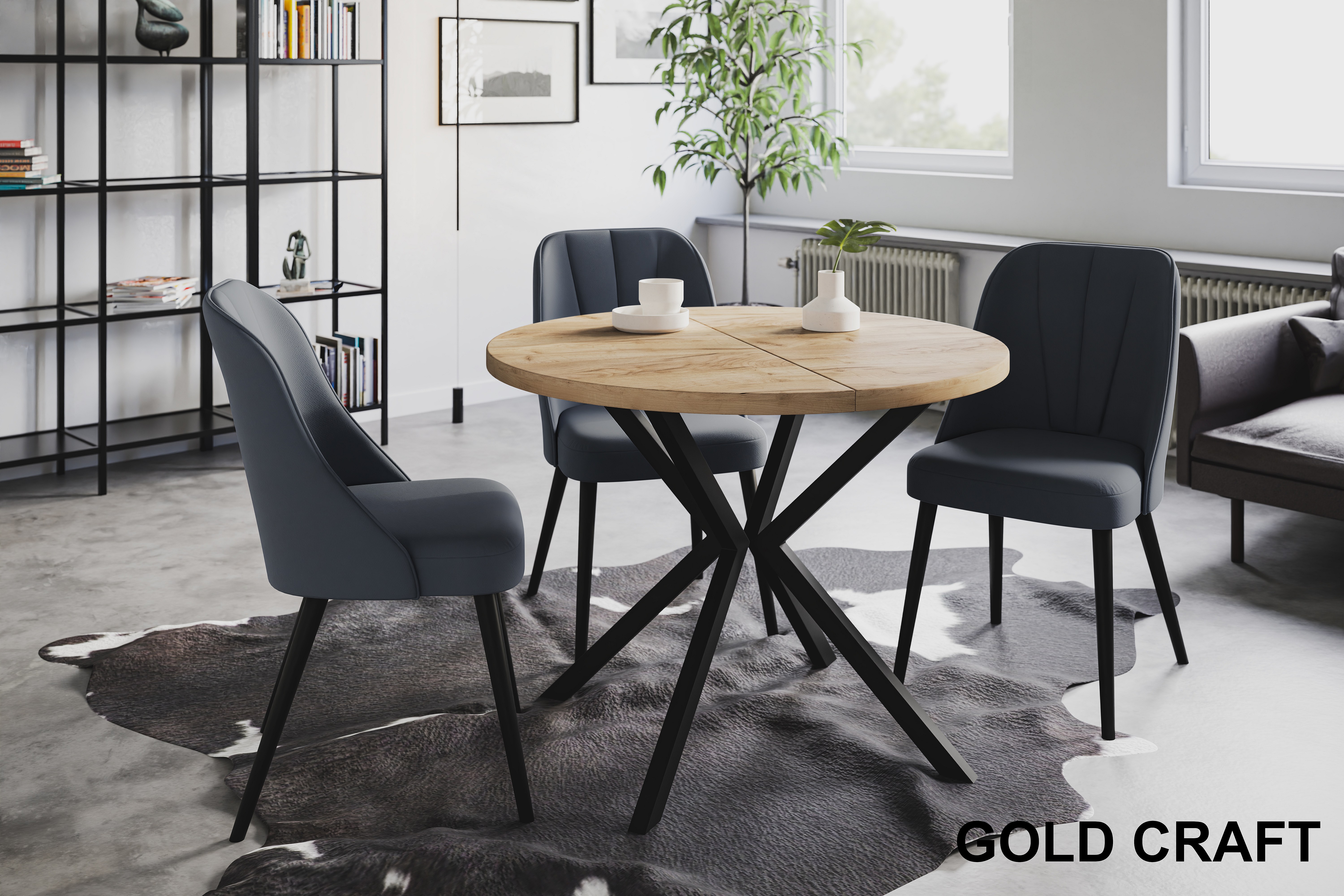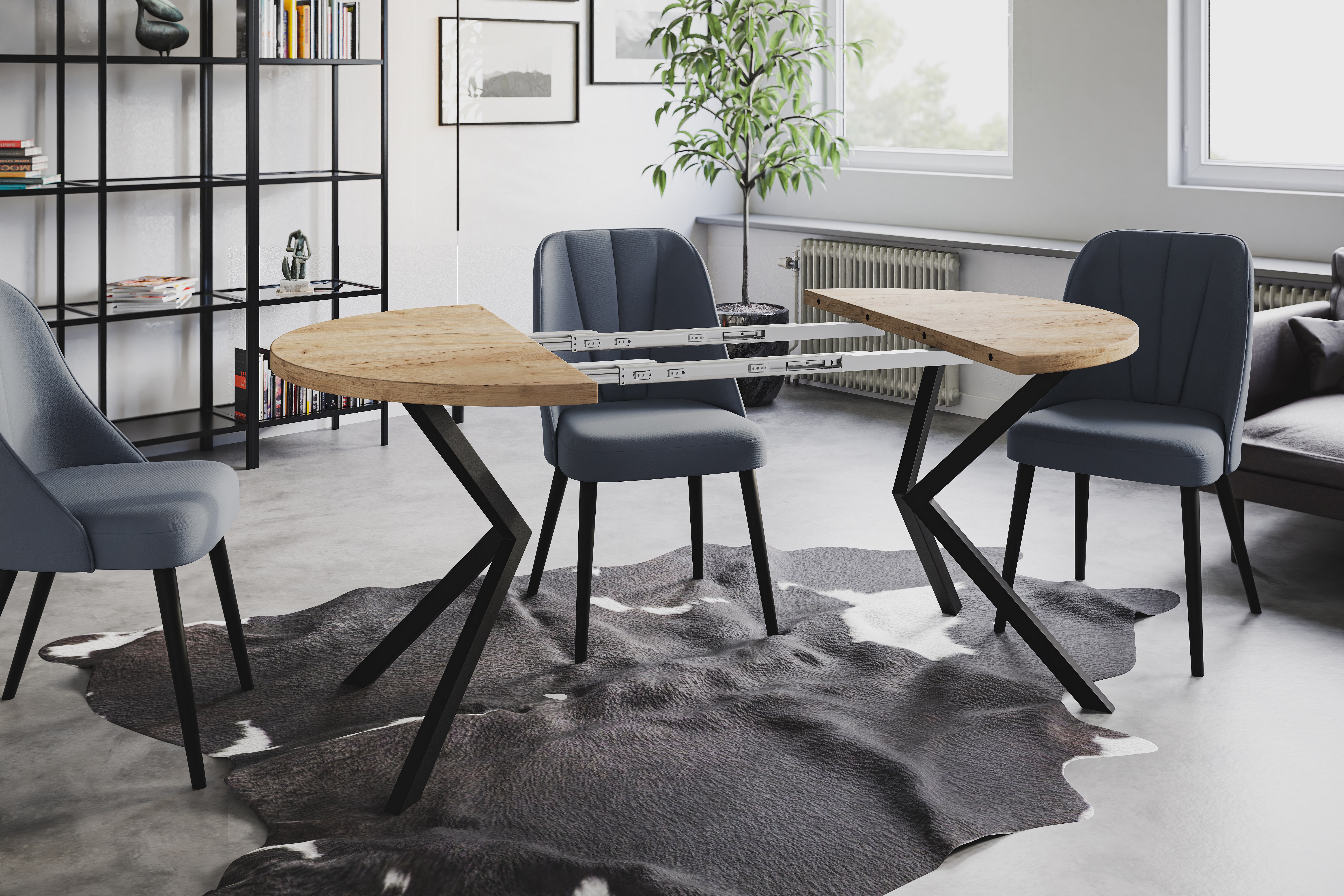 Table à manger ronde LITEN, table à rallonges Diamètre : 90 cm/170 cm, table de salon Couleur : marron, avec pieds métalliques de couleur noire