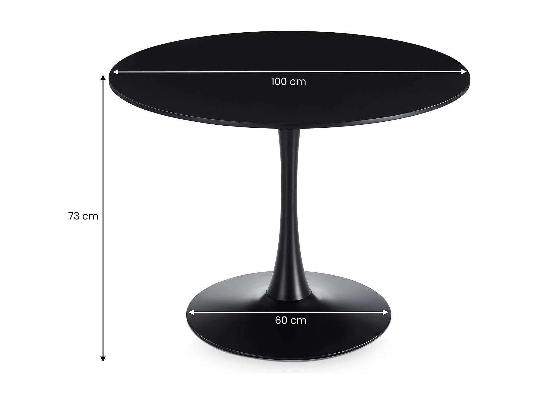 Table à Manger ronde LOIRE Ø 100 cm, Noir, Idéale pour 3 à 4 Personnes, Design Moderne pour Salle à Manger