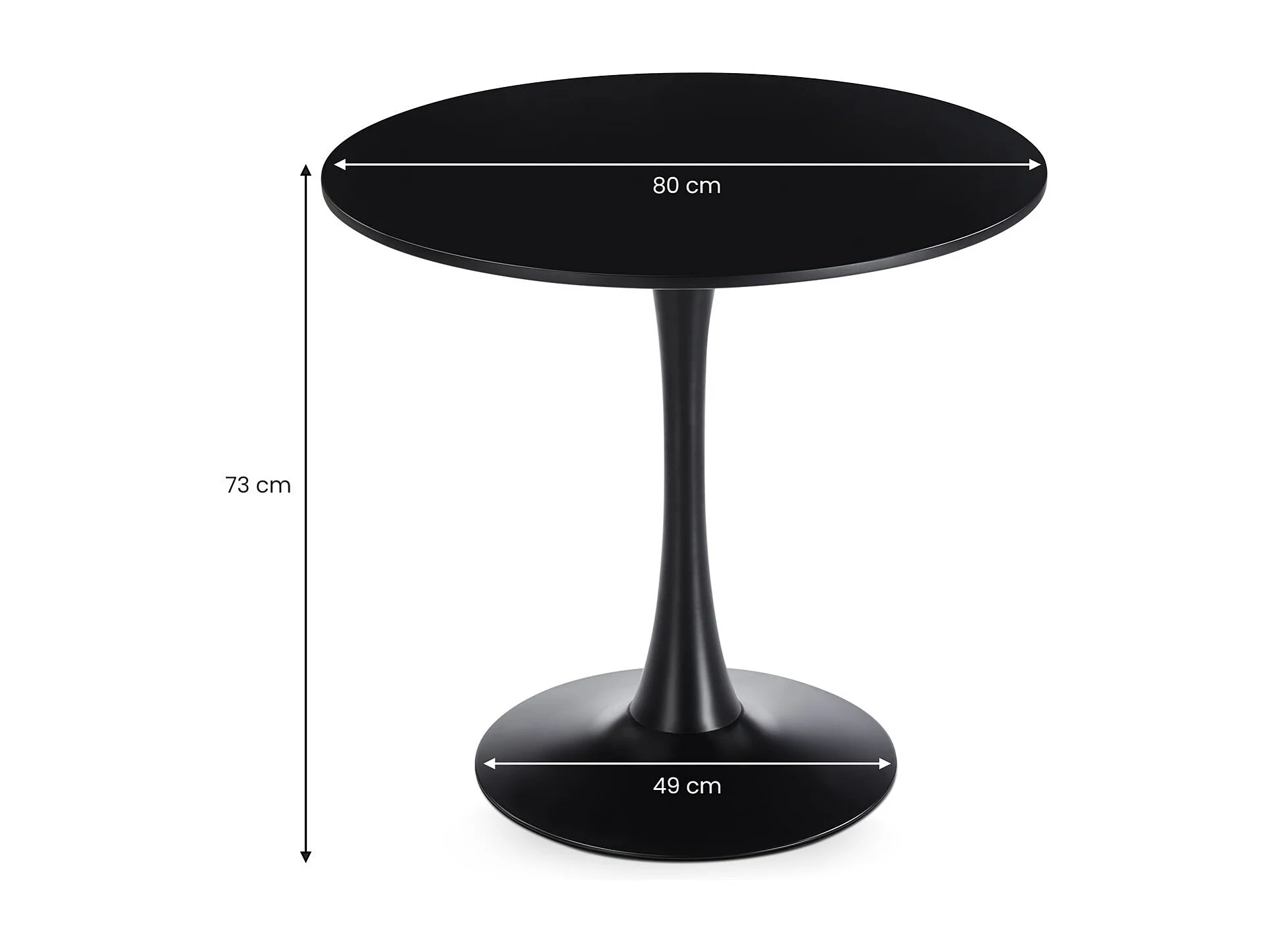 Table à Manger ronde LOIRE Ø 80 cm, Noir, Design Moderne pour Salle à Manger, Pour 2 à 3 personnes,