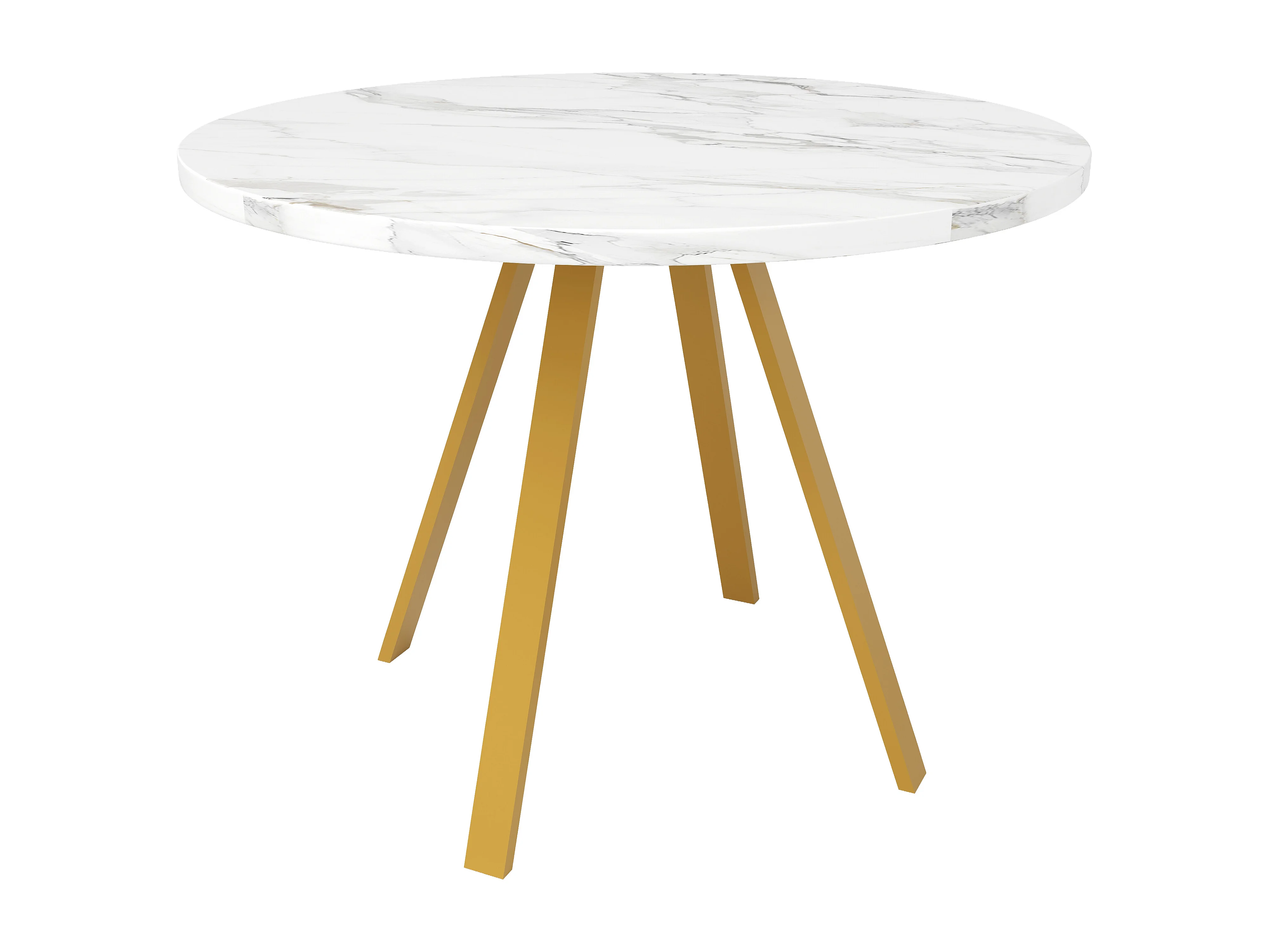 Table À Manger - Plateau Rond - Pour 4 Personnes - Effet Marbre Blanc Avec Pieds Métal Doré - 80x80x75 cm En MDF+Métal - Blanc+Or