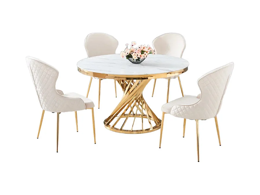 Table à manger ronde NAUTILUS en verre marbre blanc
