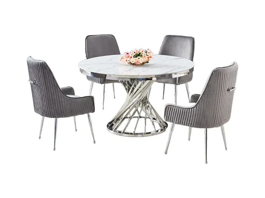 Table à manger ronde NAUTILUS en verre marbre blanc