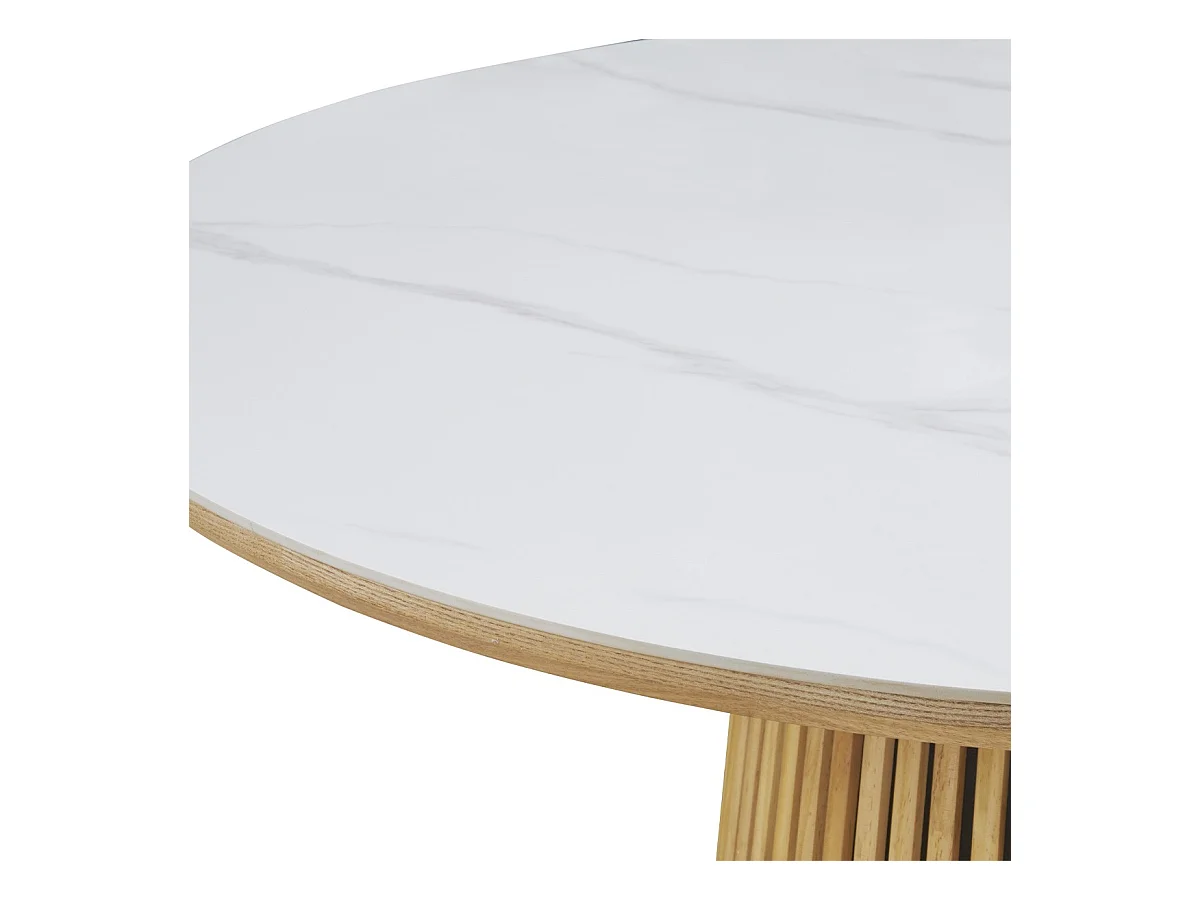 Table à manger ronde plateau en céramique effet marbre et bois clair 6 personnes Ø120 cm - Ada