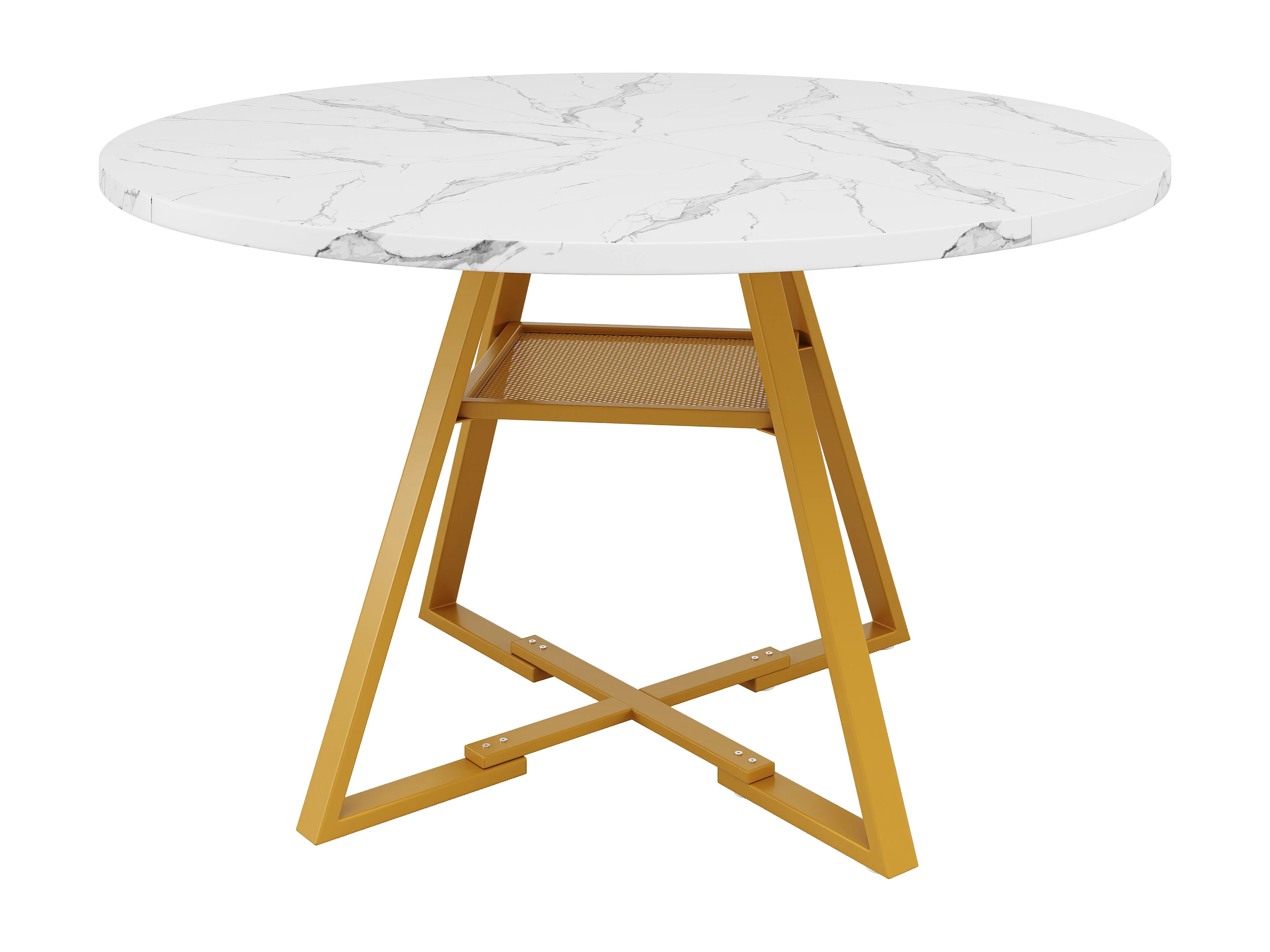 Table à manger ronde pour 4 personnes - 120x120x75cm - avec plateau en bois et pieds en métal - Motif marbre - Blanc