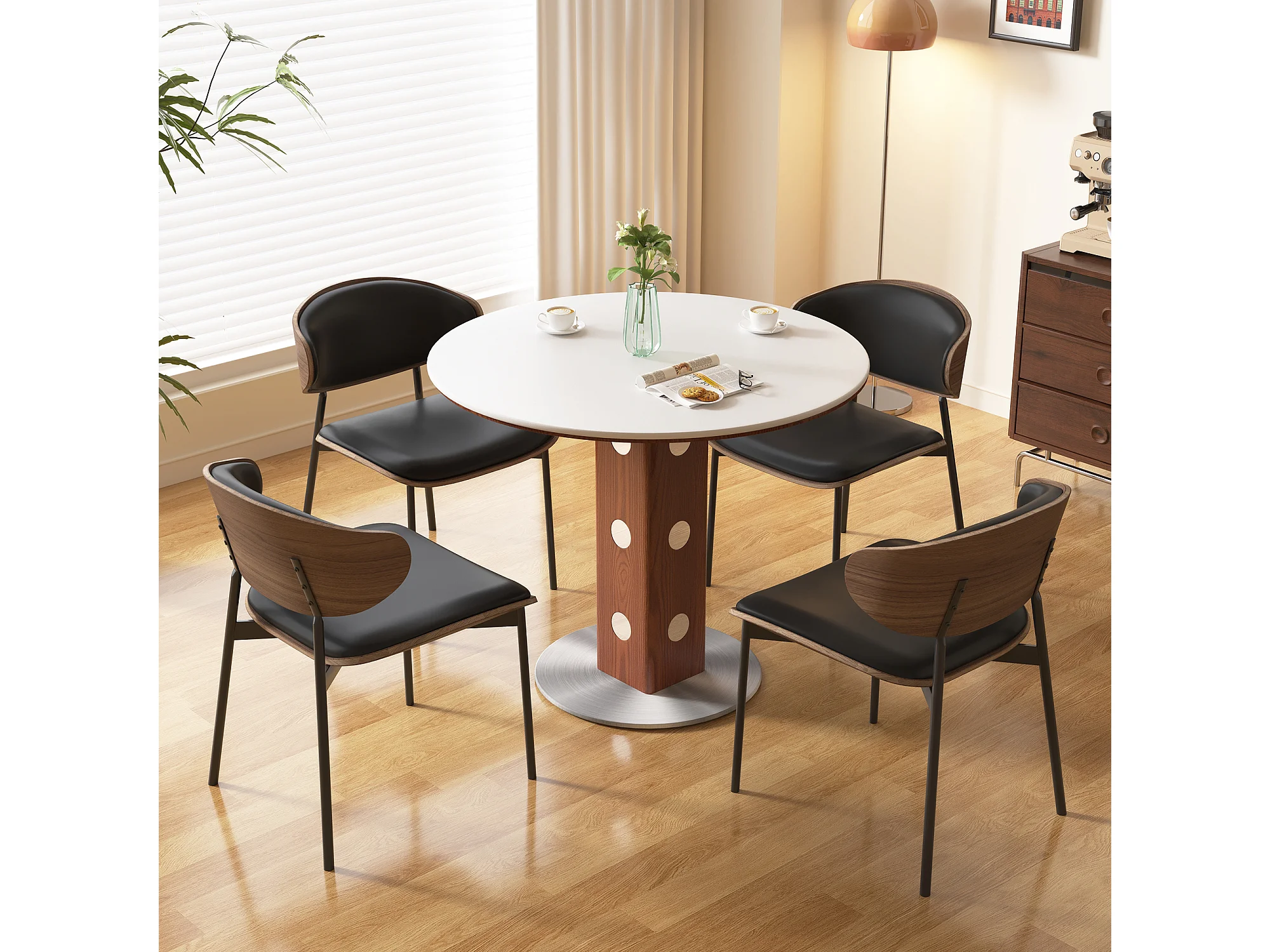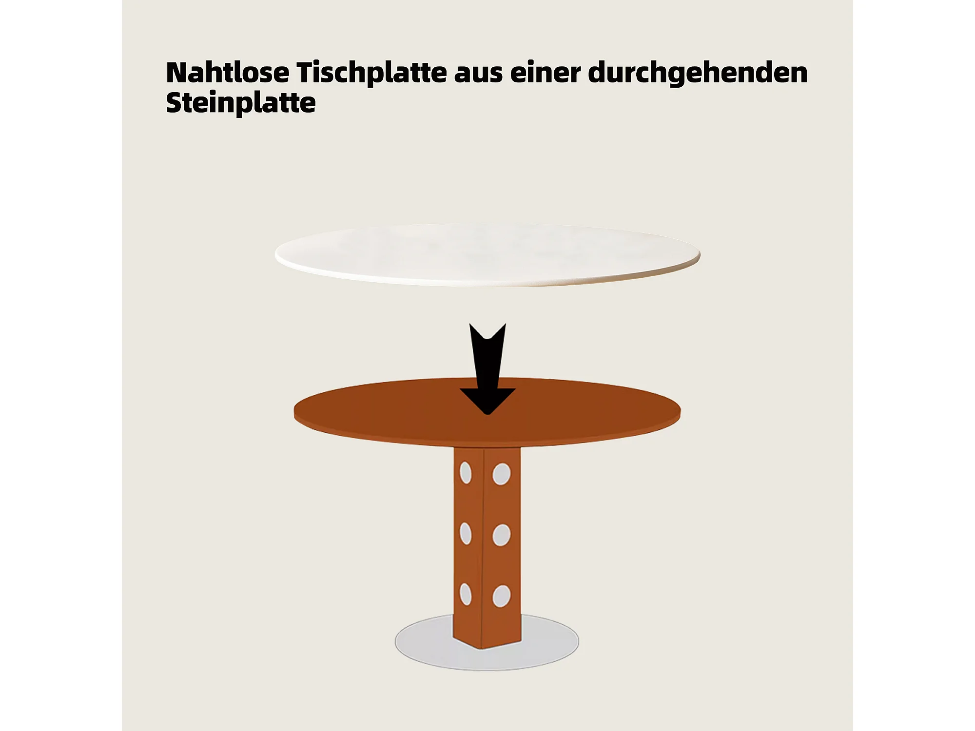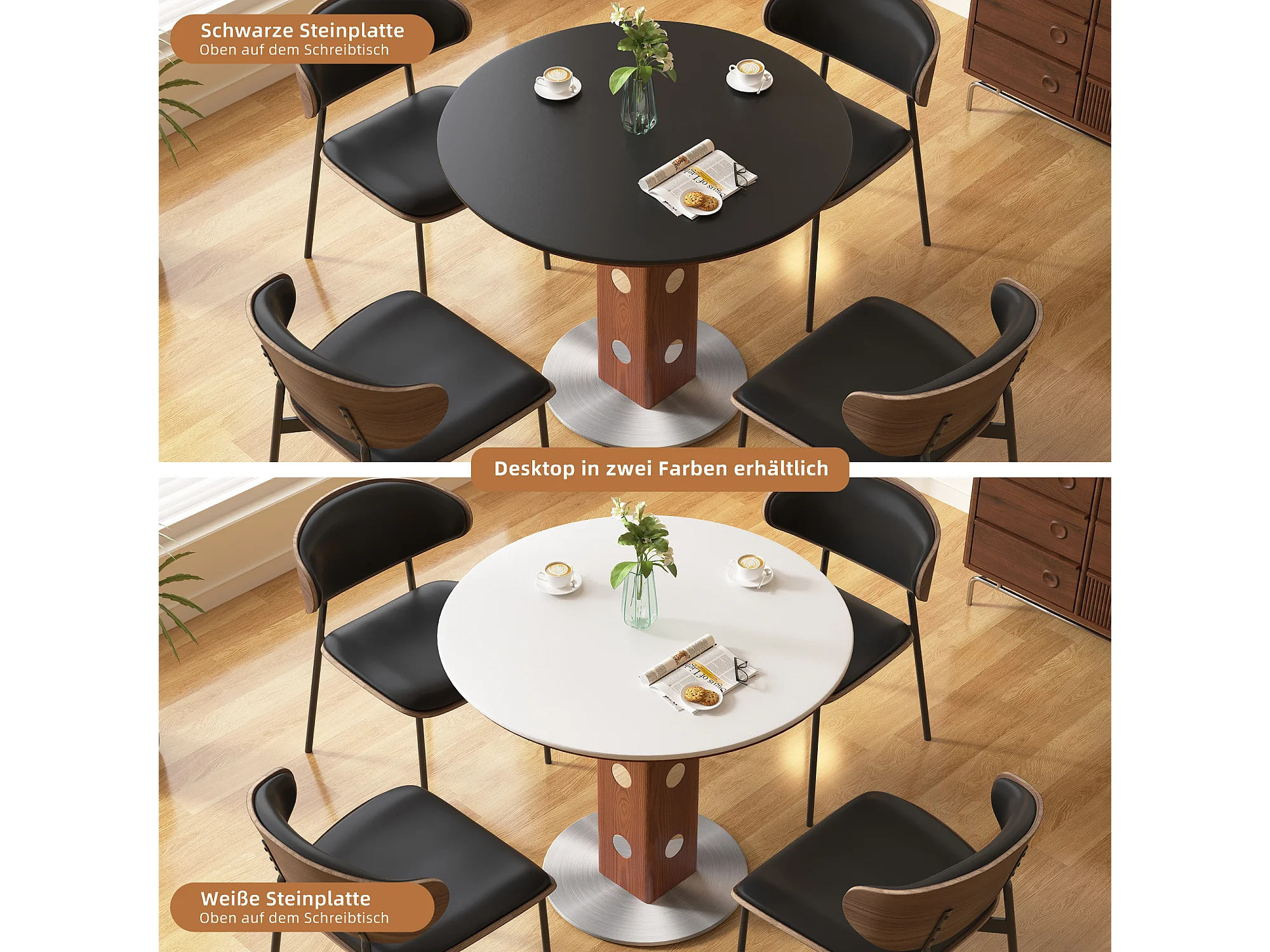 Table à manger ronde style moderne et minimaliste – table de cuisine/salle à manger 90 cm avec plateau en pierre frittée et structure bois-métal pour salon, salle à