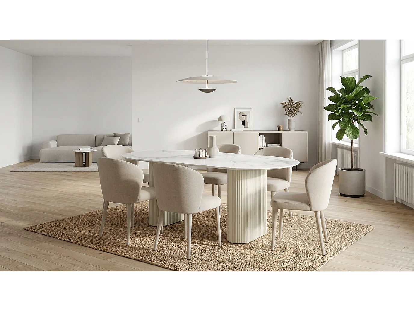 Table a manger céramique effet pierre beige 180x90x75 cm ROXY