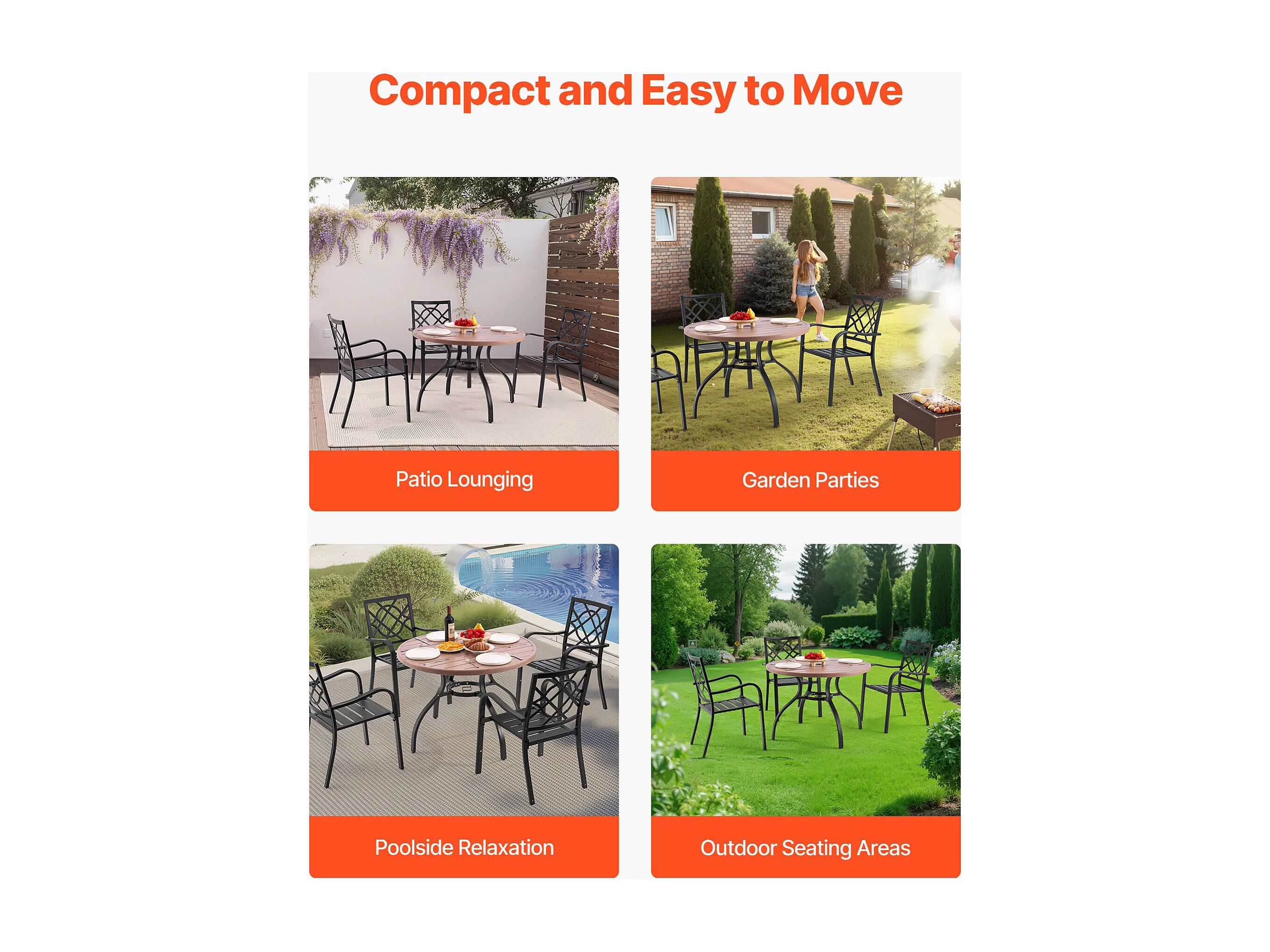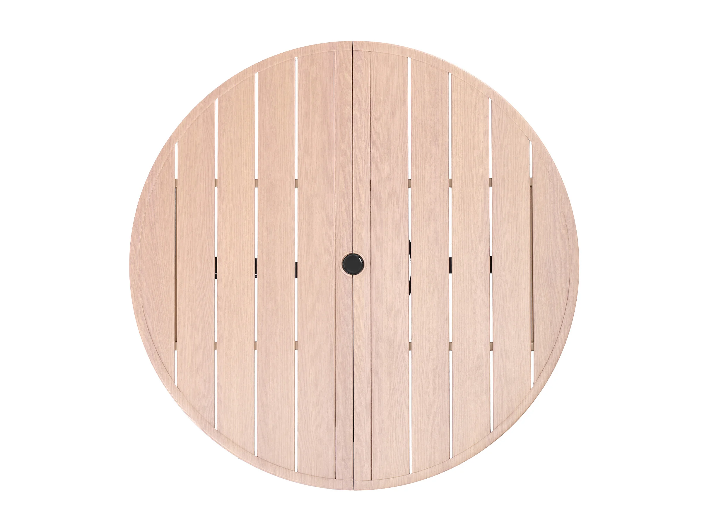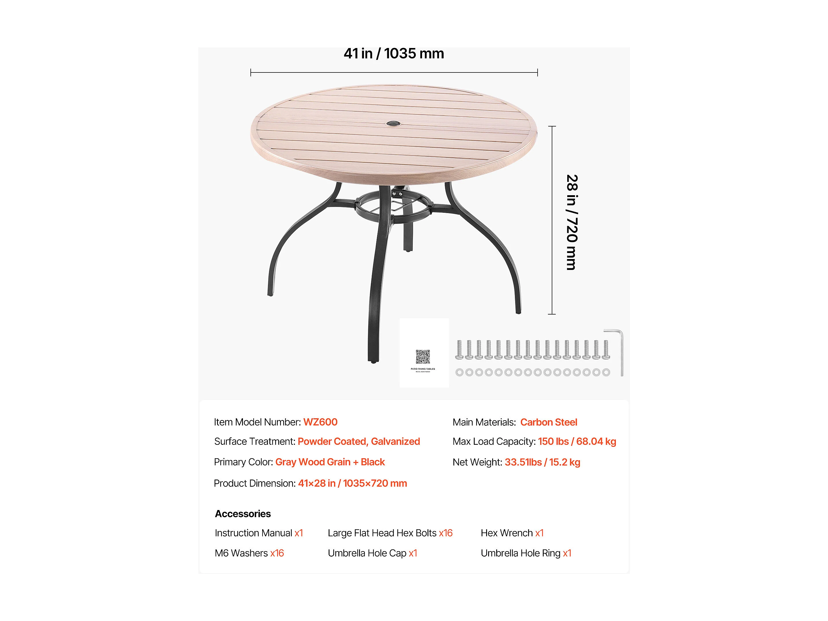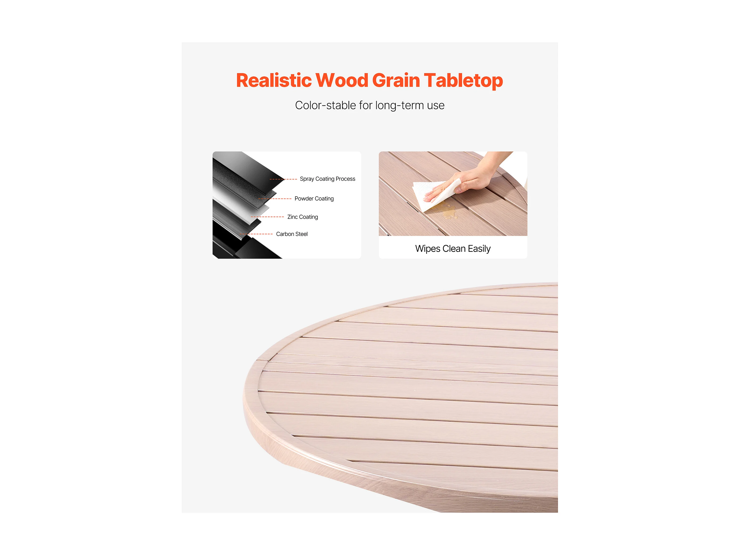Table à Manger SucceBuy pour Patio Extérieur 103.5cm, Table de Bistrot Ronde en Acier Imitation Bois pour 4 Personnes, Trou pour Parasol de 3.8 cm, Gris