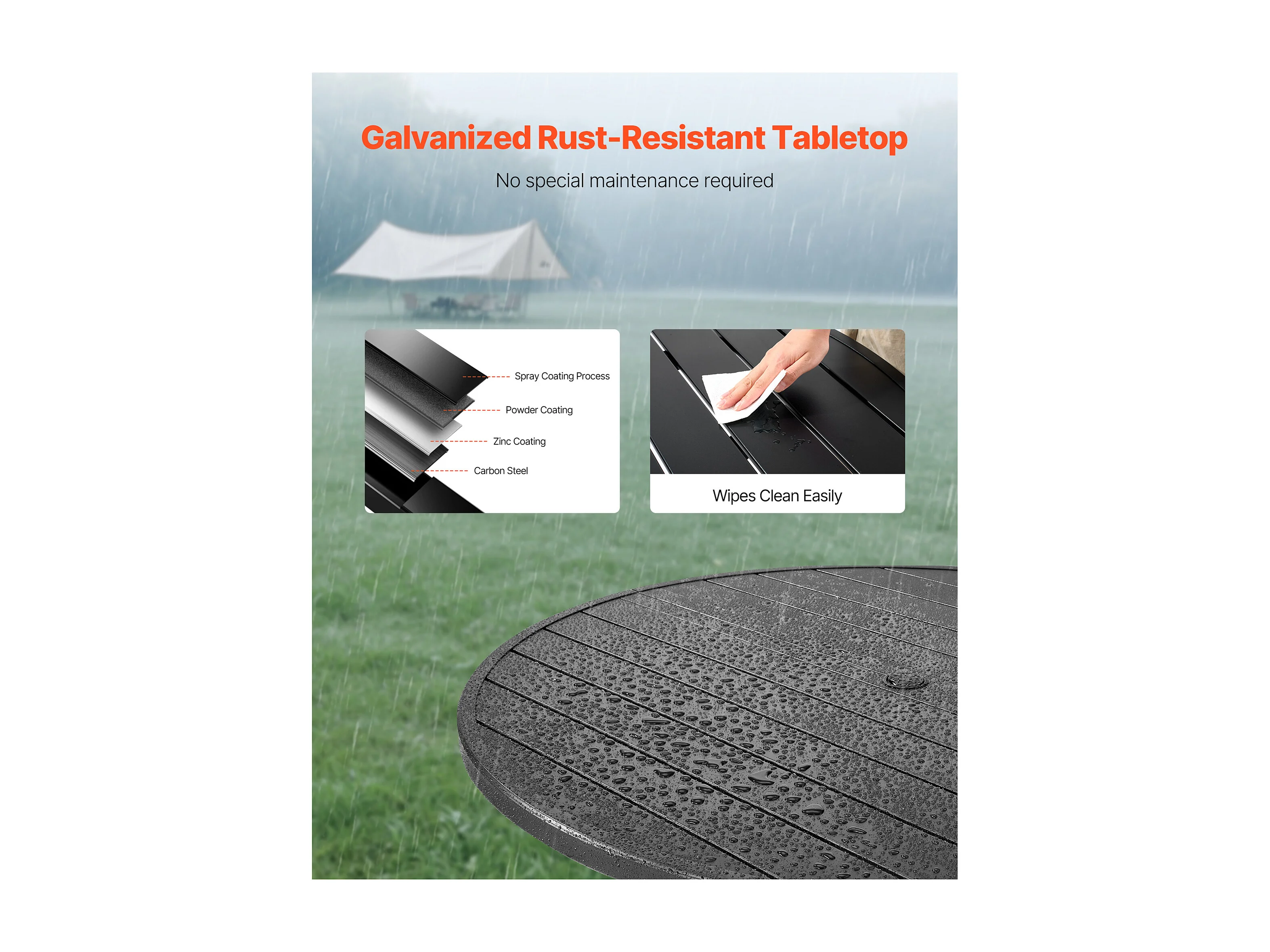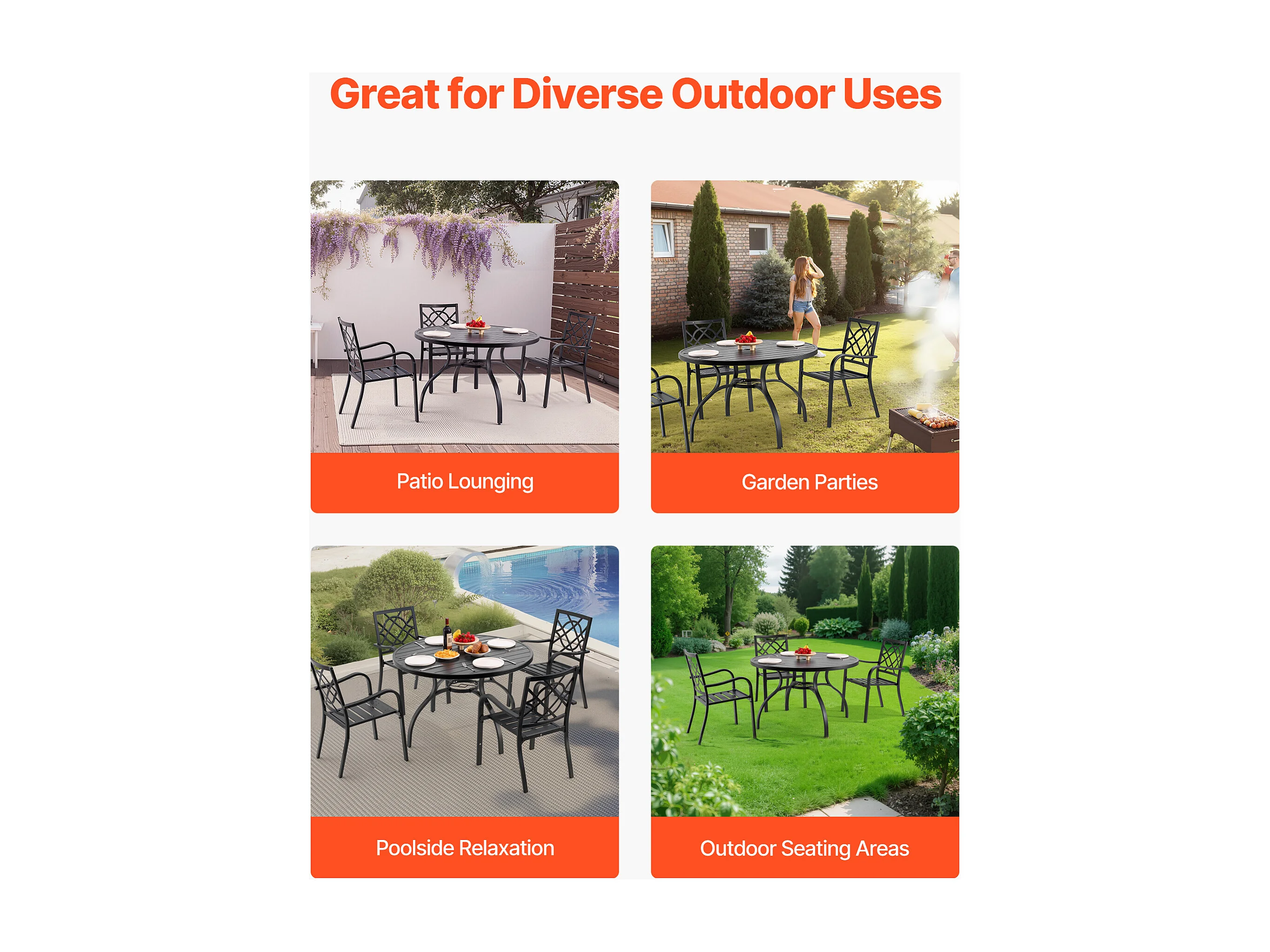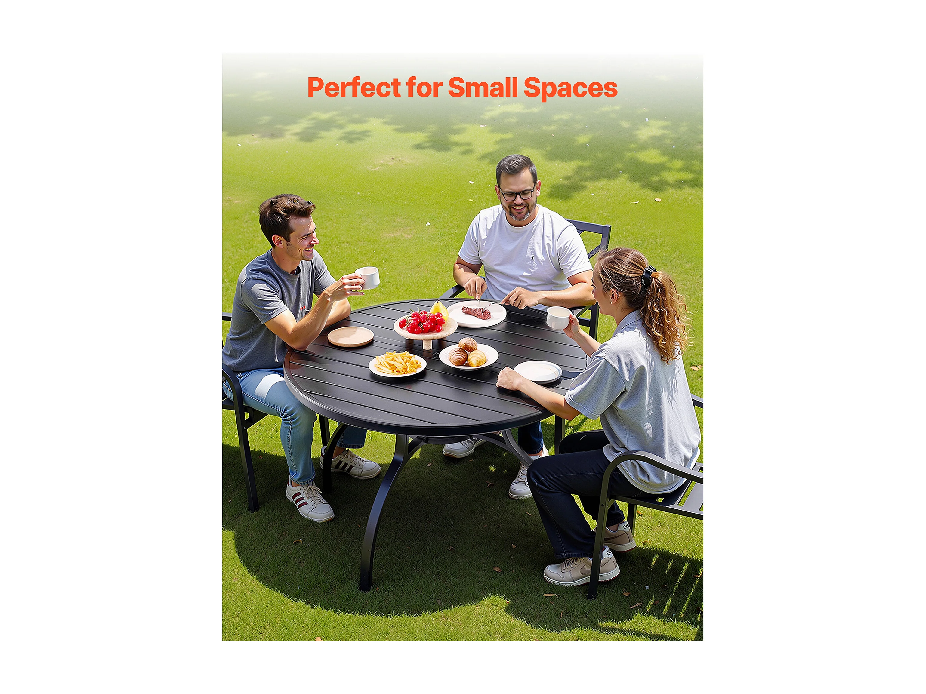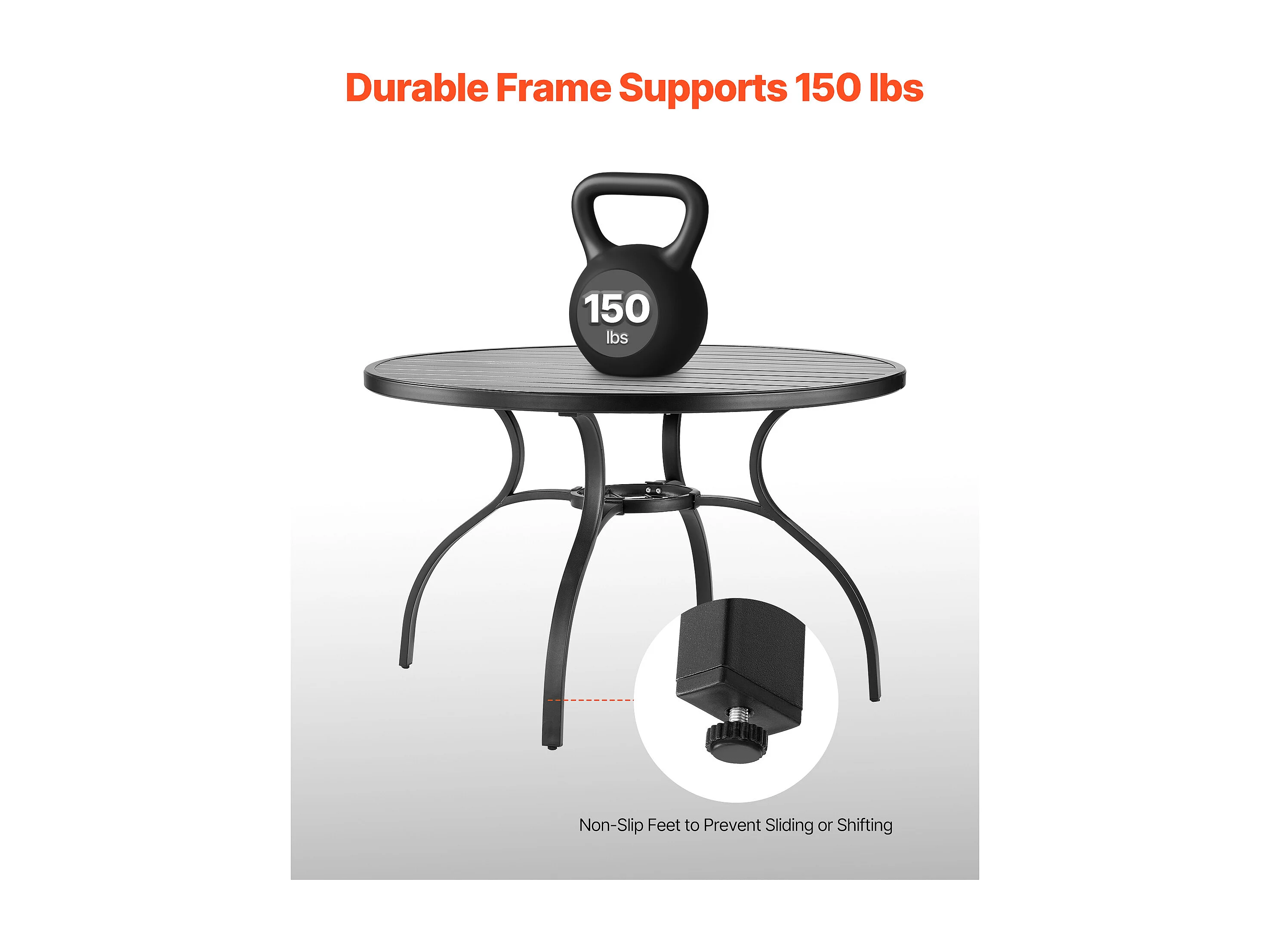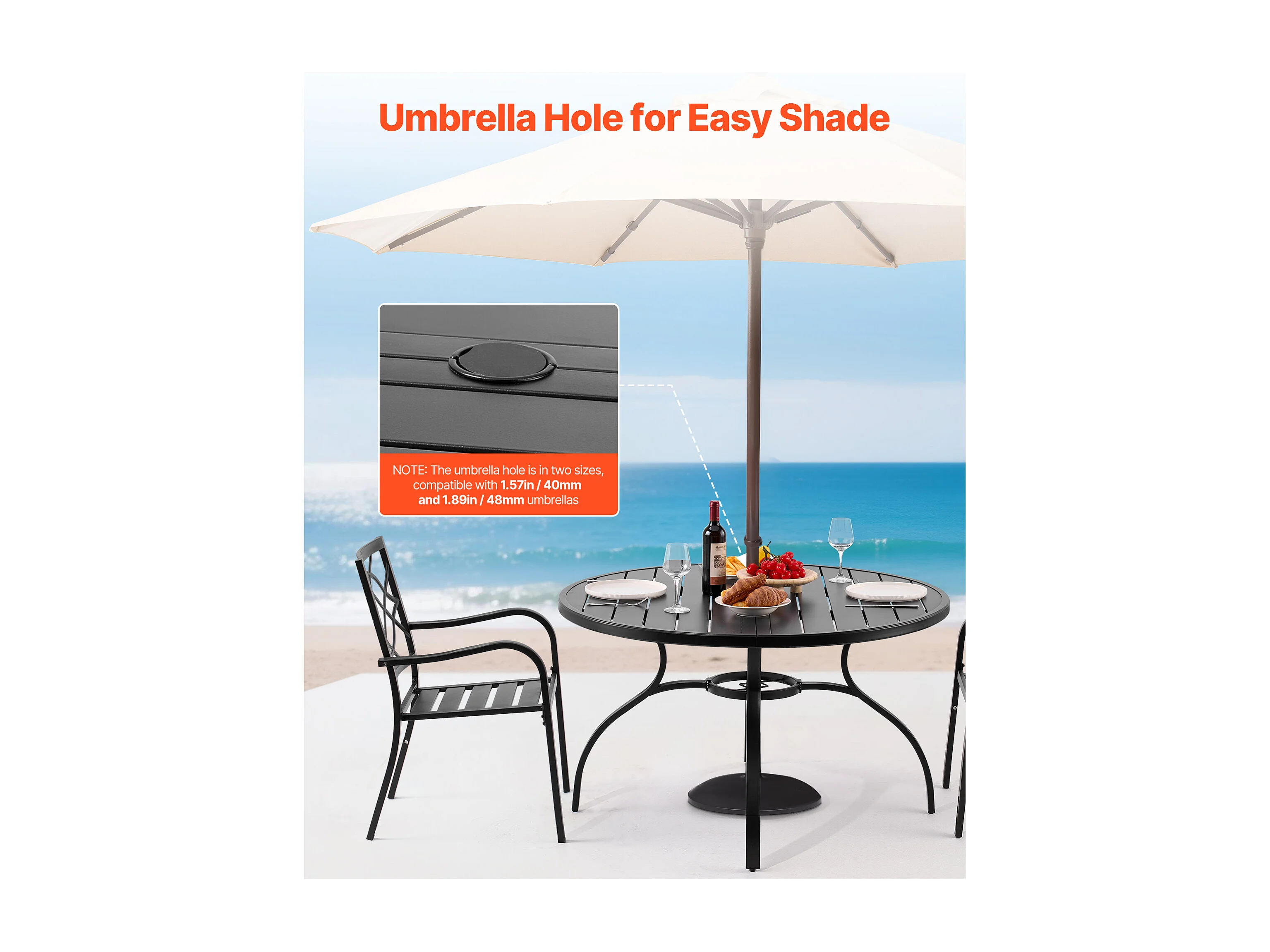 Table à Manger SucceBuy pour Patio Extérieur 120 cm, Table de Bistrot Ronde en Acier Et Métal, Charge 68,04 kg, avec Trou pour Parasol de 3.8 cm, Noir