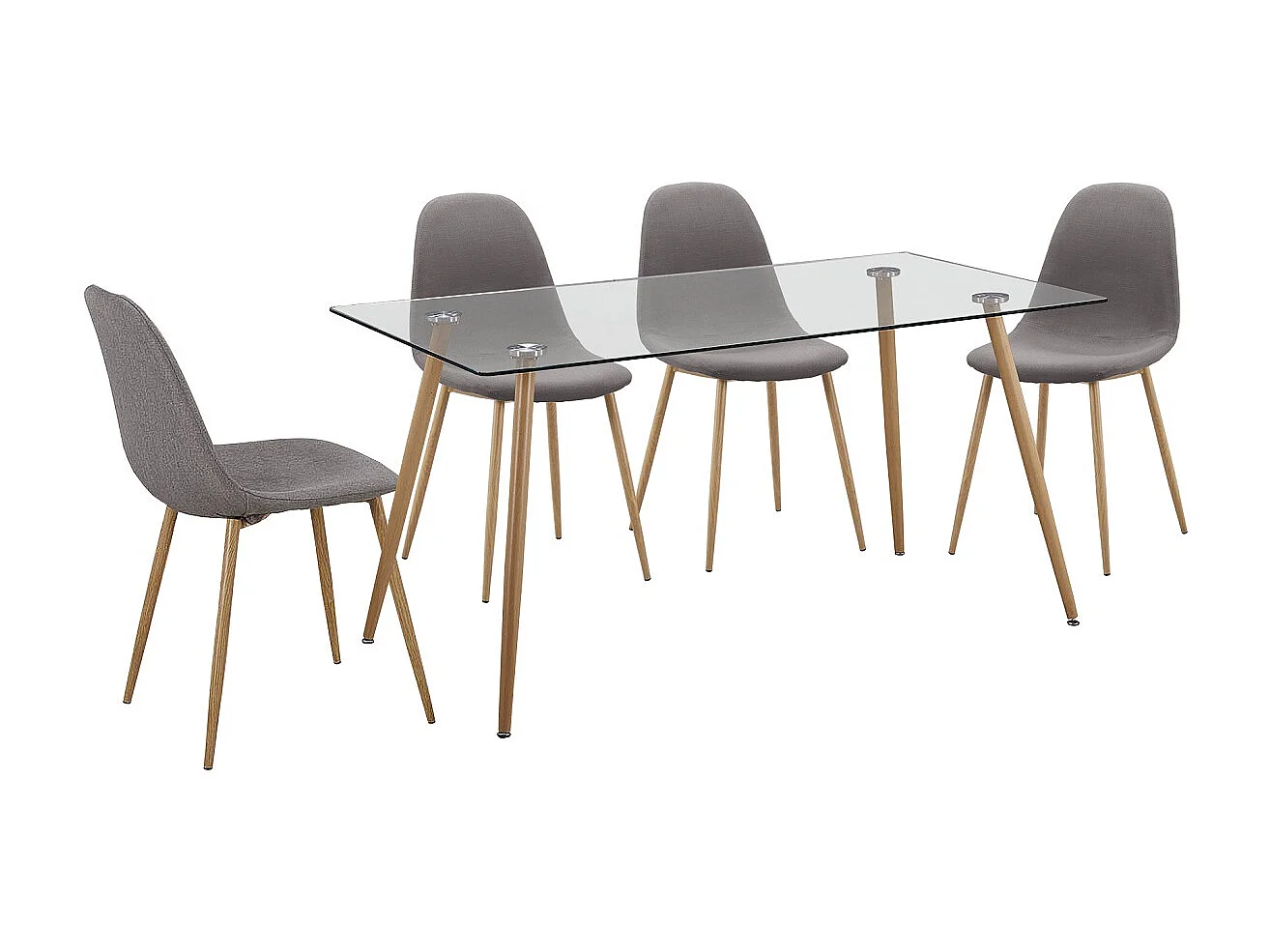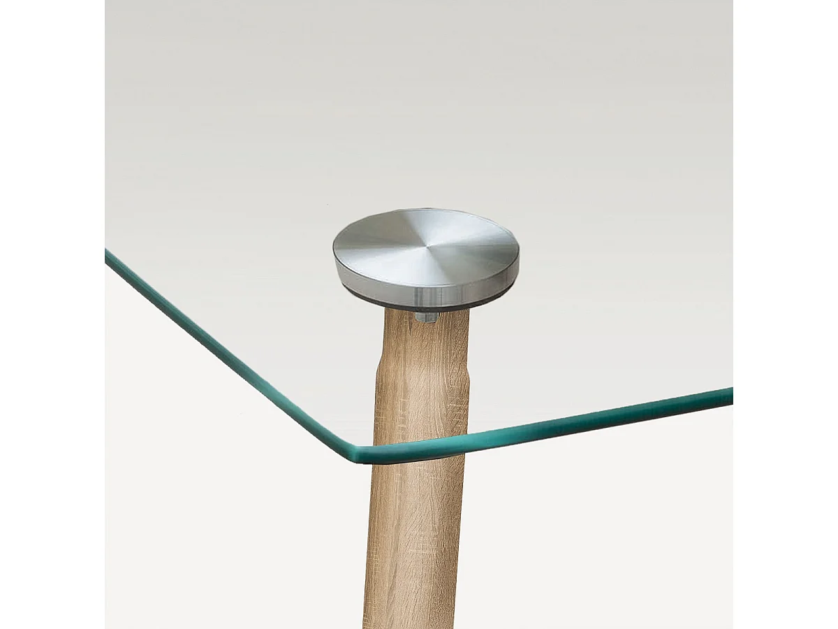 Table à manger, table de repas en verre et pieds métal coloris chêne cambrian