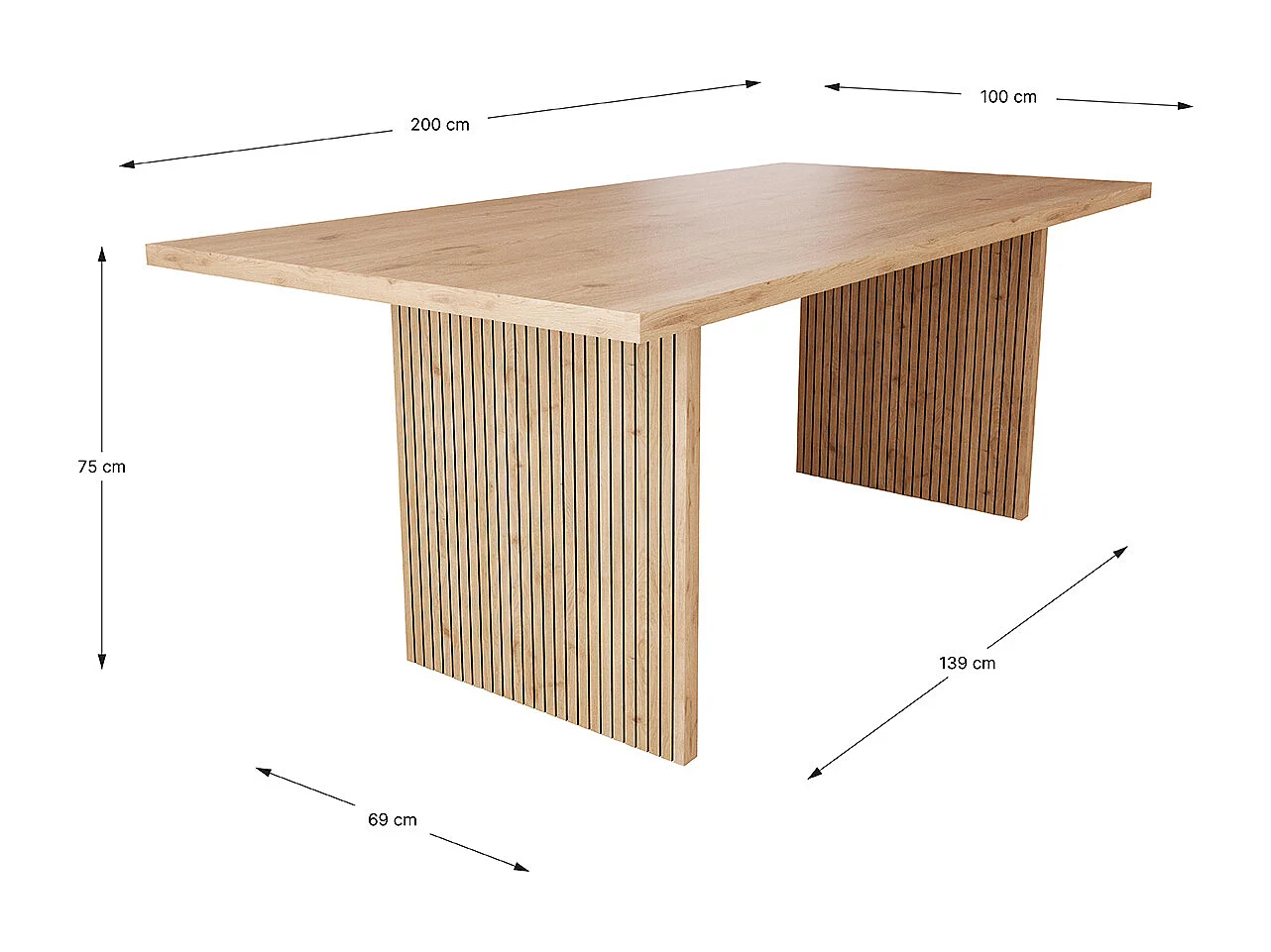 Table à manger, table de repas rectangulaire aspect bois coloris chêne - Longueur 200 x Profondeur 100 x Hauteur 75 cm