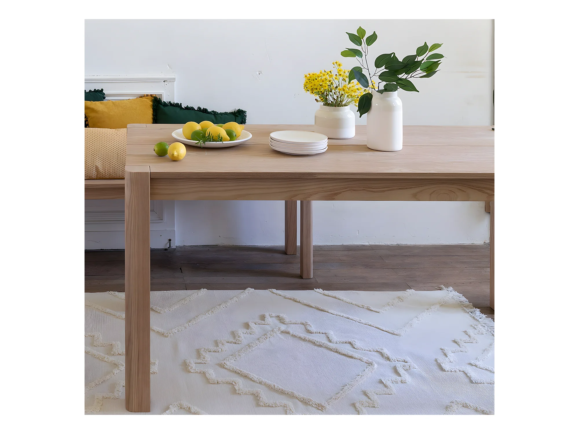 Table à manger / table repas coloris naturel - Longueur 160 x Profondeur 79,5 x Hauteur 76 cm