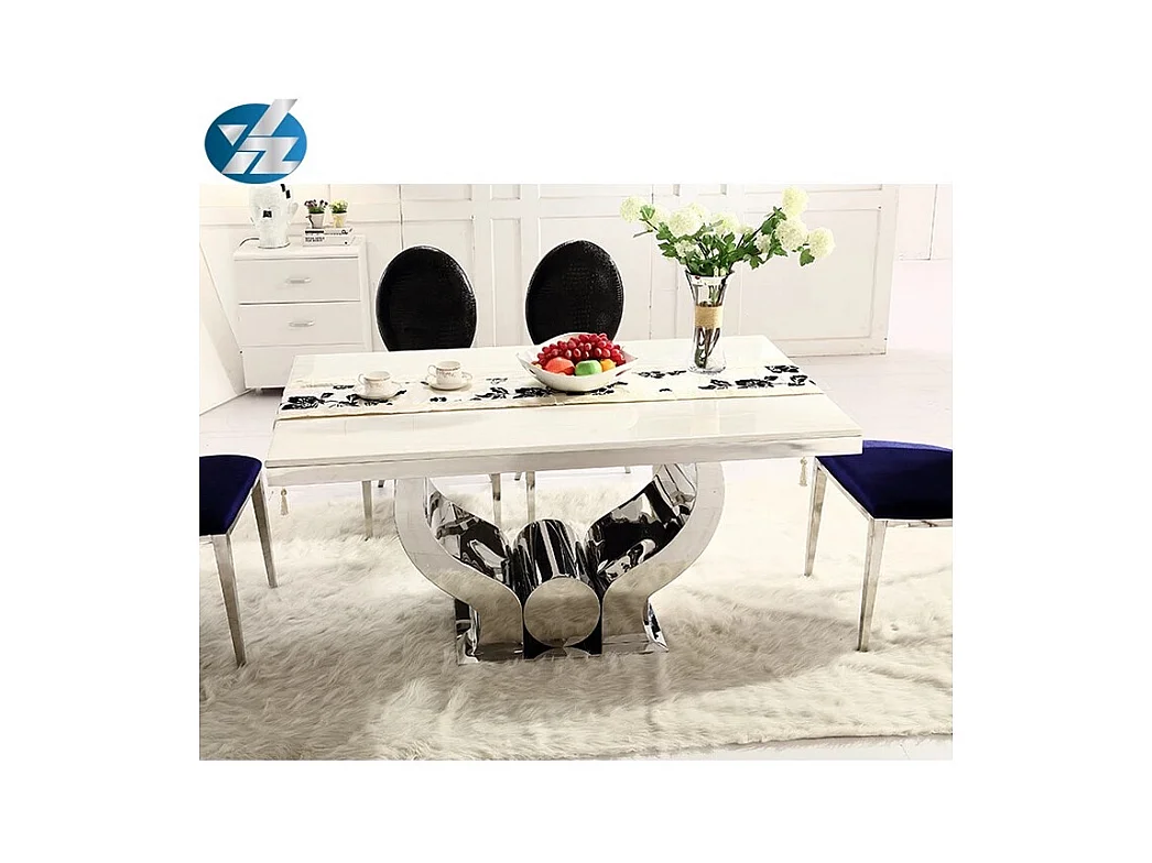 Table à manger TROFY 4 à 6 personnes 150x90 cm chrome plateau en verre blanc