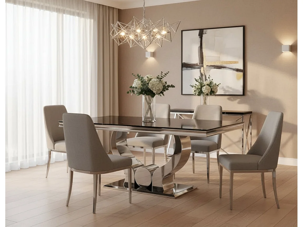 Table à manger verre noir pied métal chrome 180x90 cm TROFY
