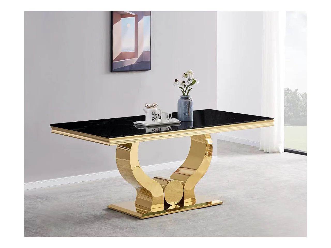 Table à manger TROFY 4 à 6 personnes 150x90 cm Gold verre noir
