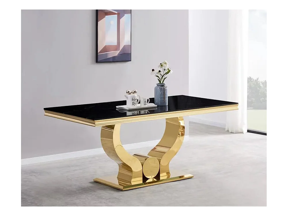 Table à manger TROFY 6 à 8 personnes gold verre NOIR 180x90 cm