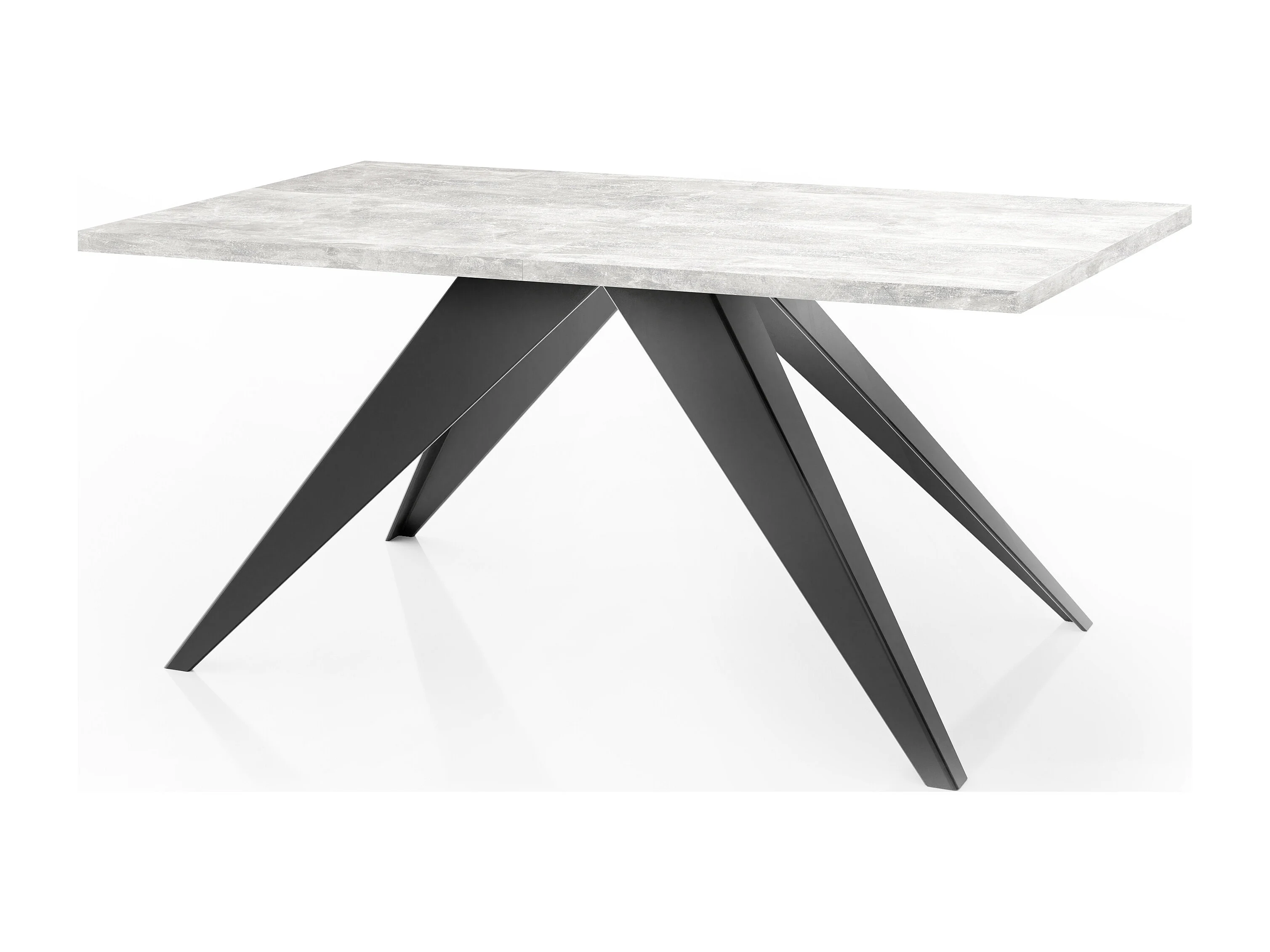 Table à Manger Vance Style Moderne - Table Rectangulaire Extensible de 160 à 260 cm, Pieds en Métal Noir Revêtement Poudre - 160 x 90 cm - Béton Gris