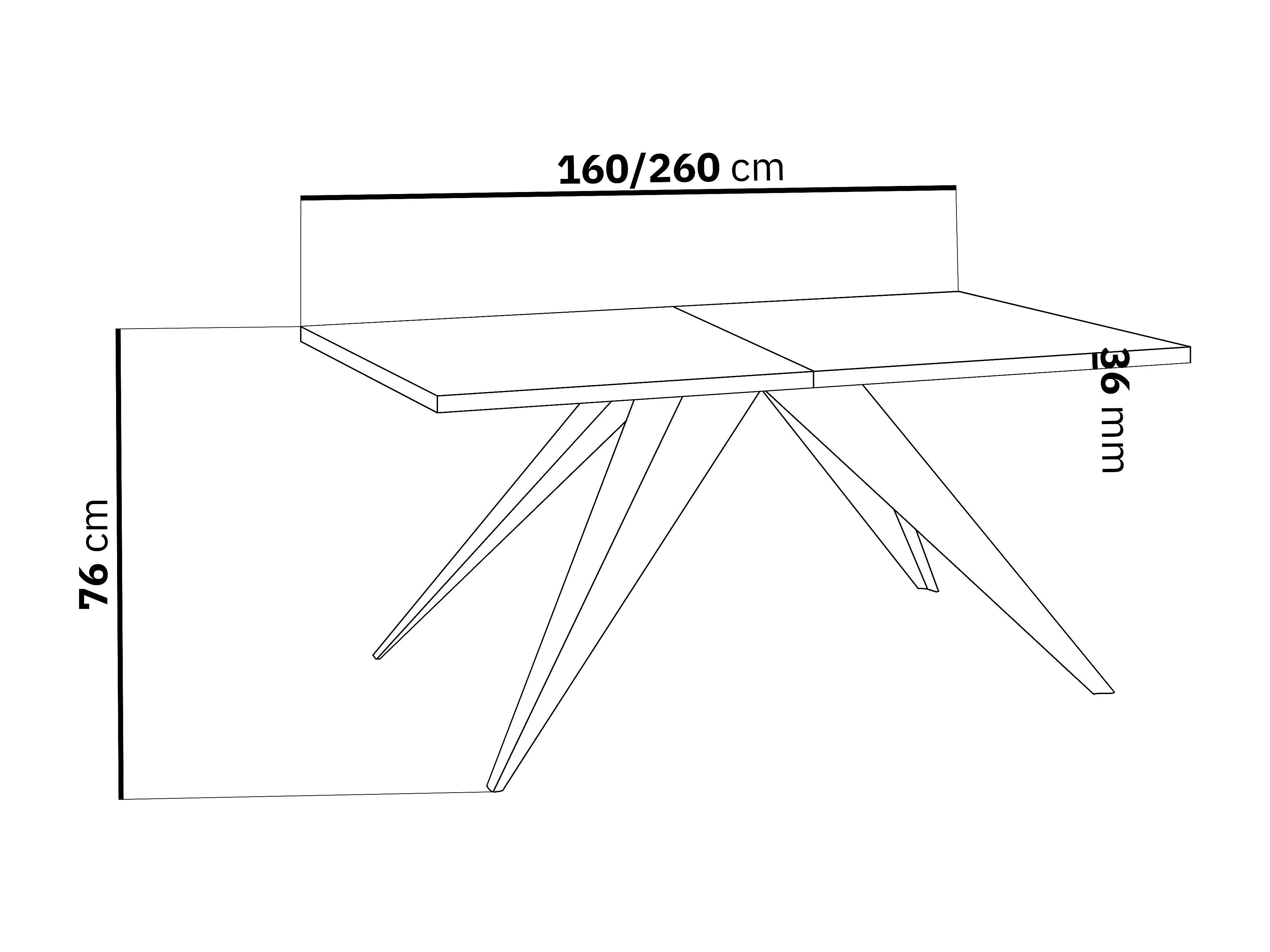 Table à Manger Vance Style Moderne - Table Rectangulaire Extensible de 160 à 260 cm, Pieds en Métal Noir Revêtement Poudre - 160 x 90 cm - Chêne Lefkas