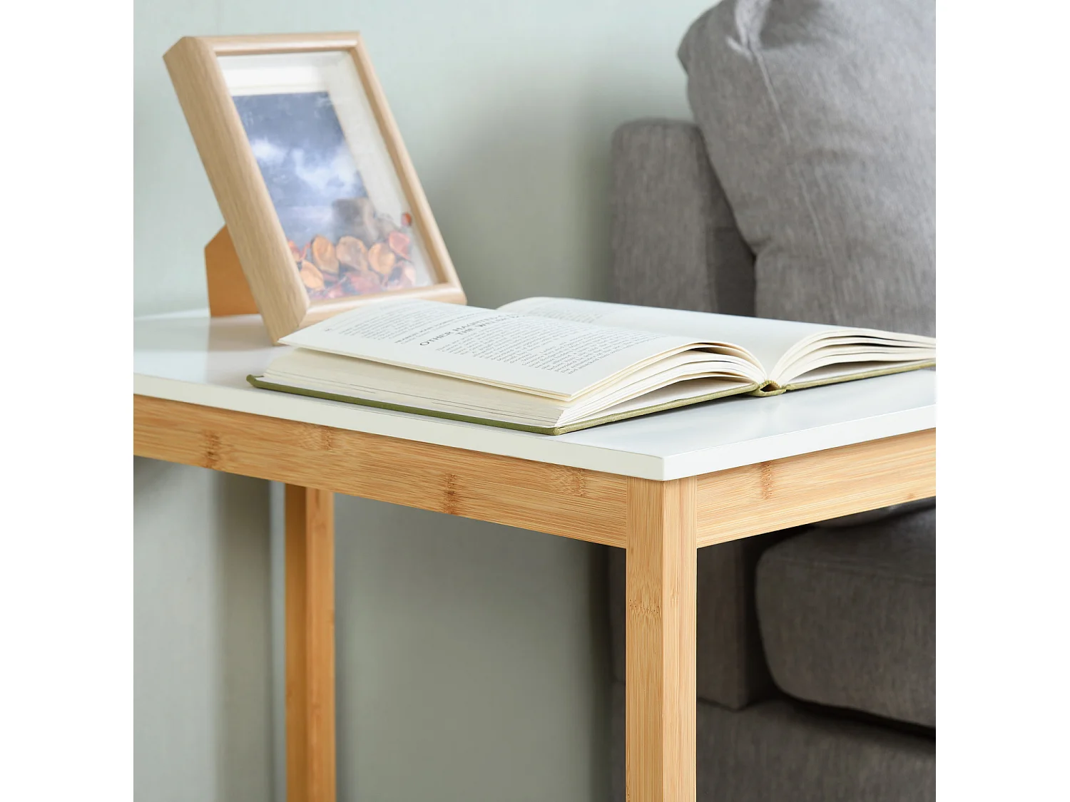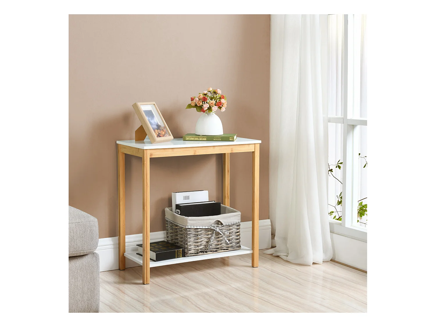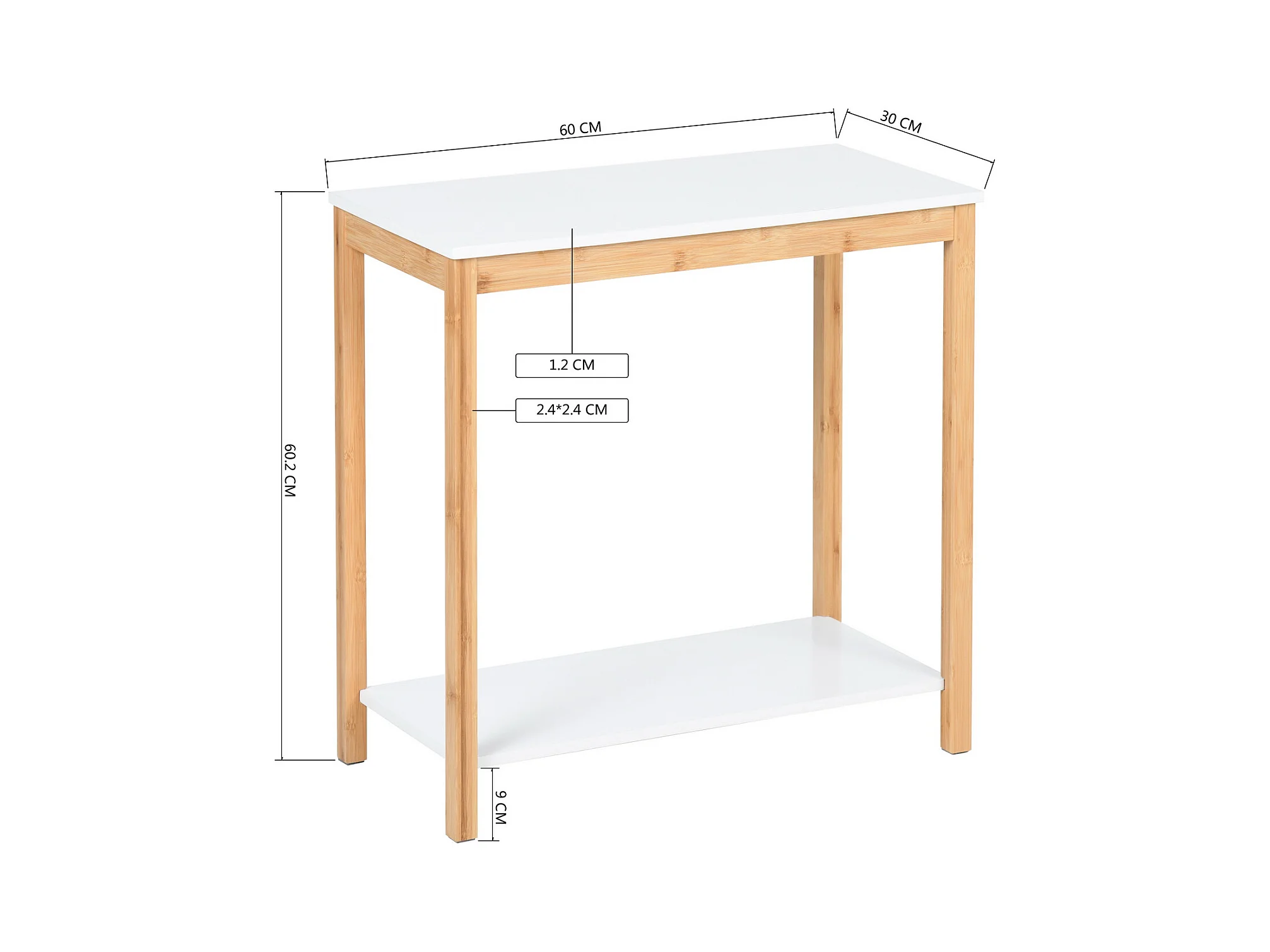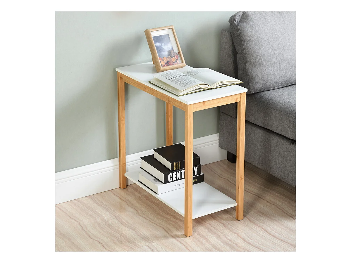 Table à point 2 niveaux bout de canapé bois blanc étagère DEWAR