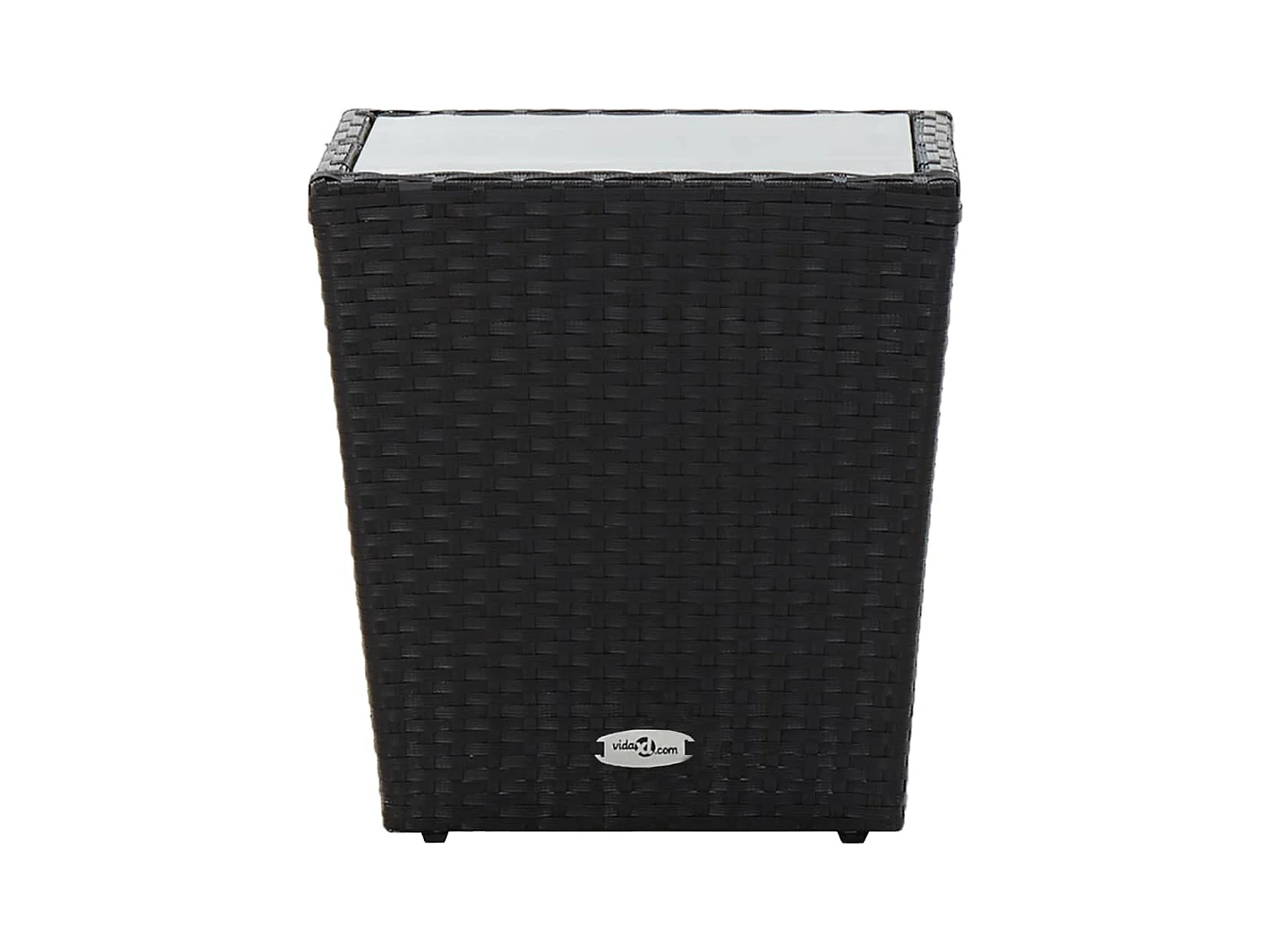 Table à thé Noir 41,5x41,5x43 cm Résine tressée et verre trempé