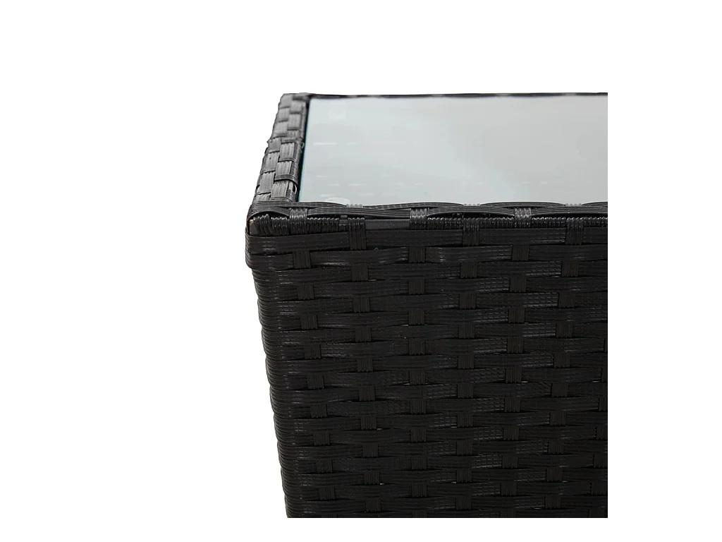 Table de jardin dessus en verre noir 55x55x37 résine tressée