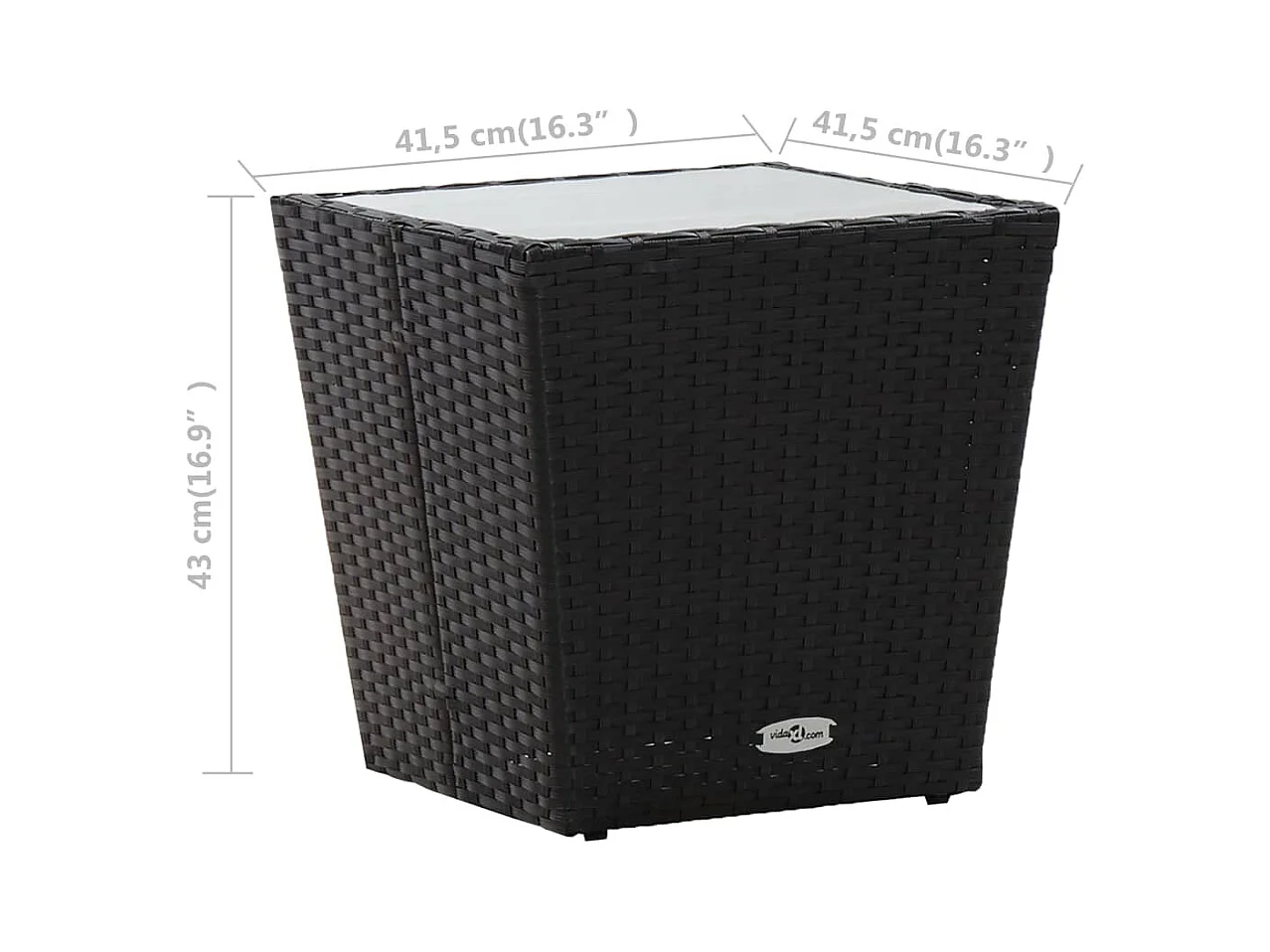 Table à thé Noir 41,5x41,5x43 Résine tressée et verre trempé