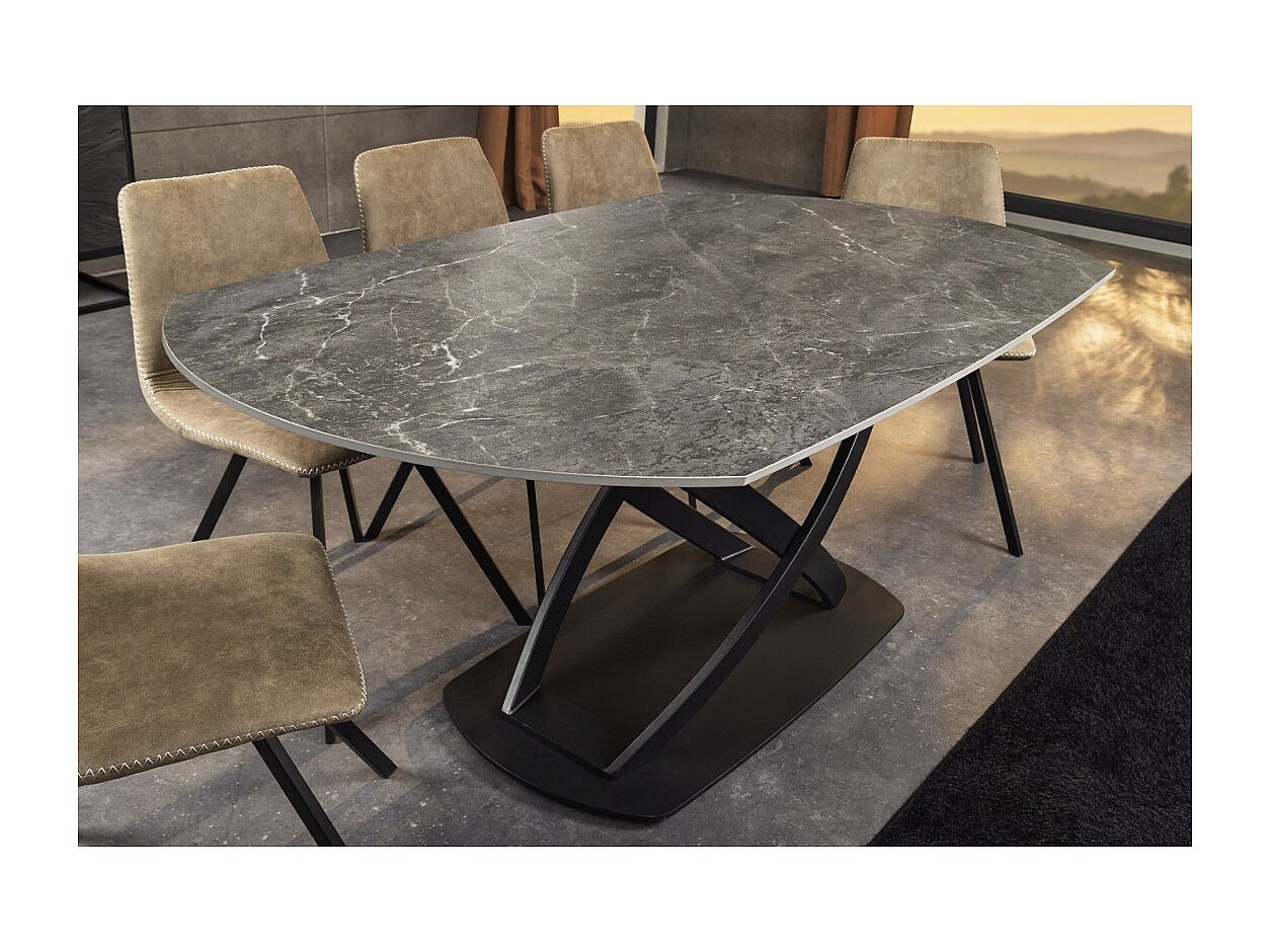 Table ATONIA – Ovale extensible 130 à 190 cm – Plateau céramique effet marbre anthracite – Pieds métal – Style moderne
