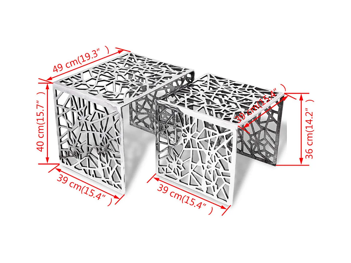 Table auxiliaire carrée 2 pièces Aluminium Argenté