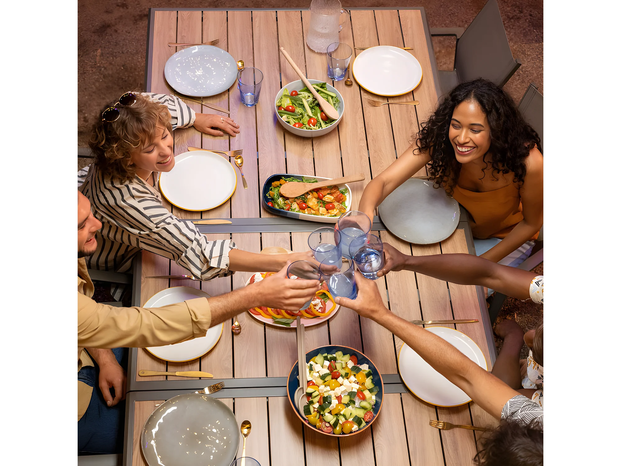 Table Axiome extensible 10p effet bois honey et praline Hespéride