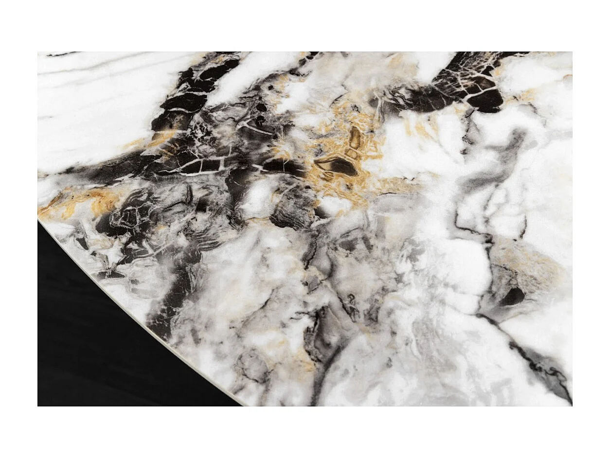 Table AXYA – Ronde 150 cm – Plateau en céramique et verre trempé effet marbre blanc avec plateau supérieur tournant